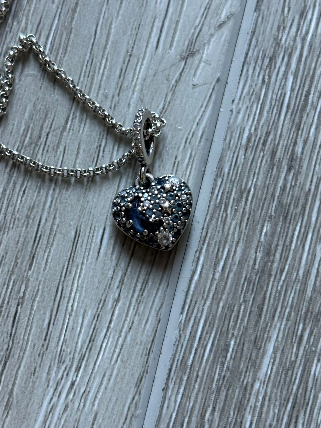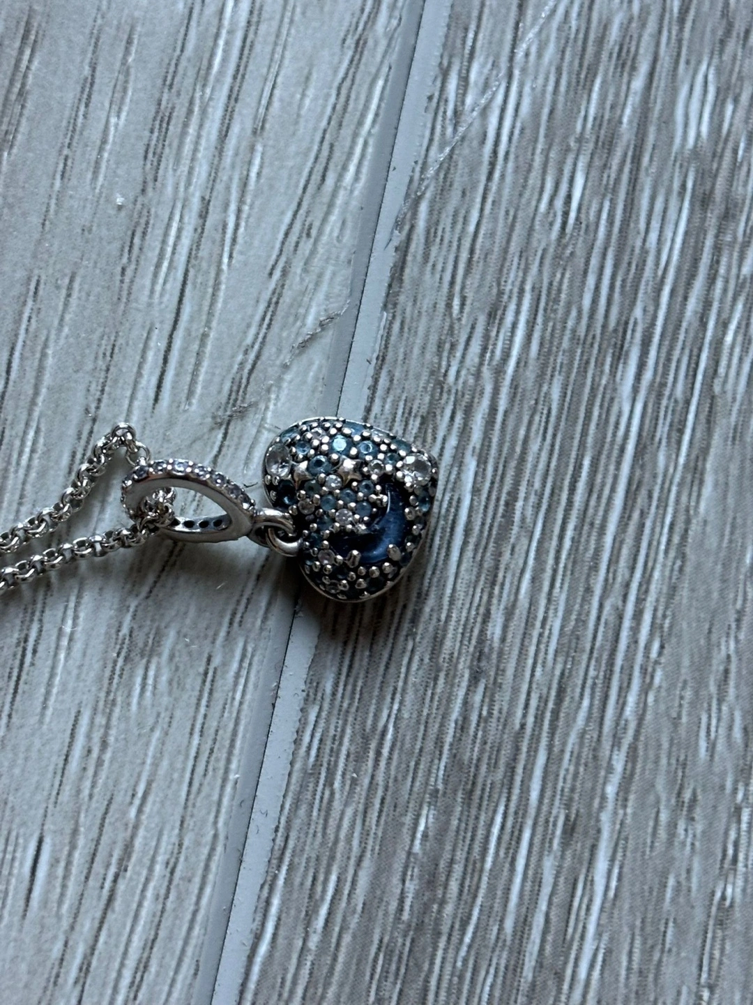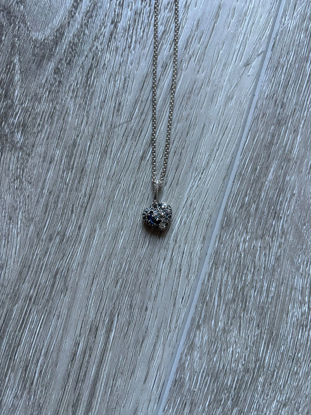 Beautiful silver heart pendant necklace. Features small blue and clear stones. Delicate chain. Perfect gift or addition to your jewellery collection.