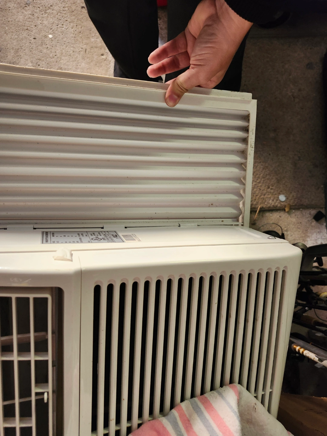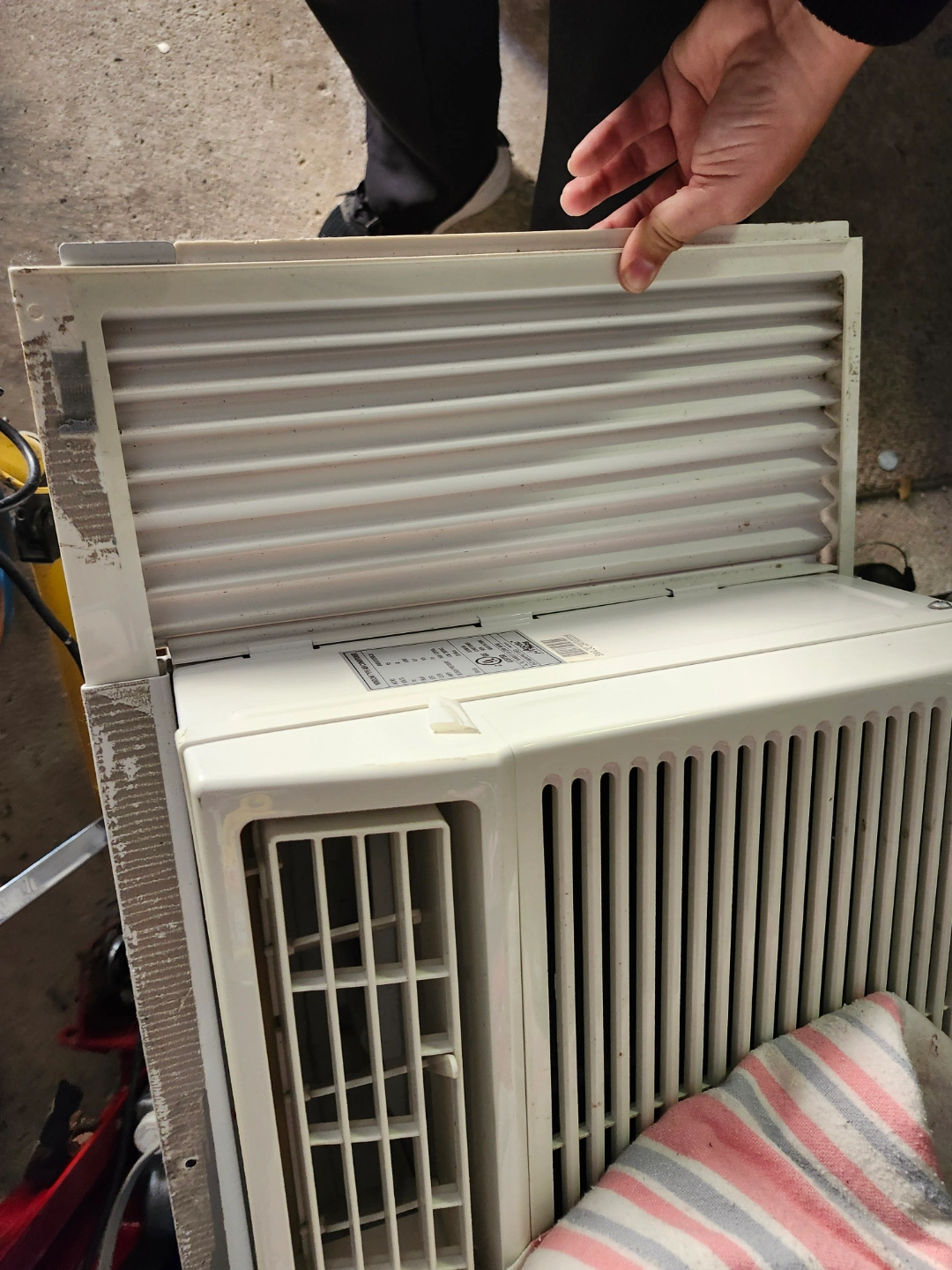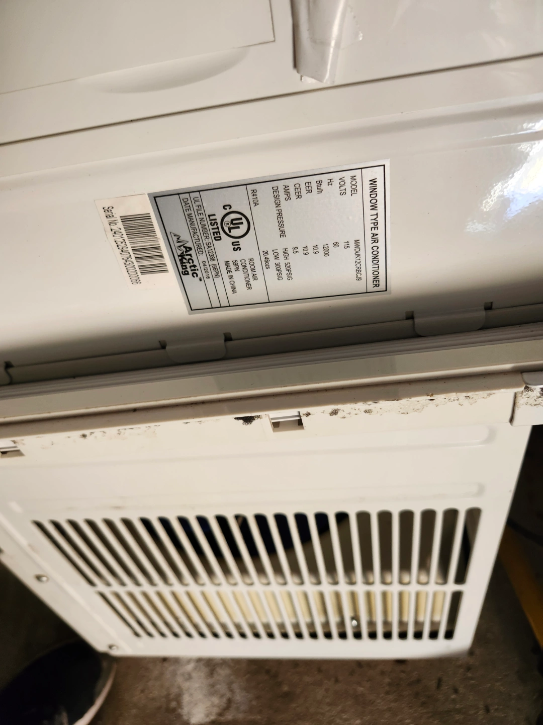 Used Arctic Air window air conditioner. White. Features multiple settings. Pre-owned, shows some wear. Comes with remote