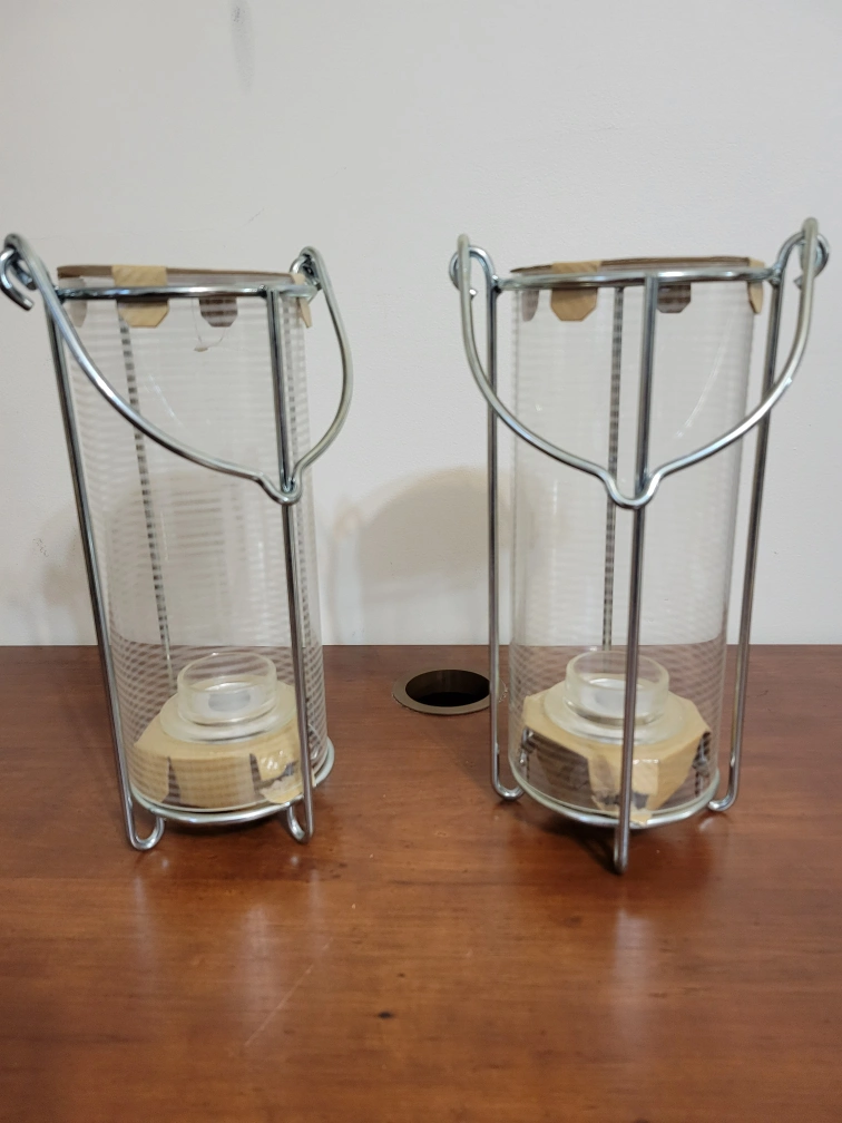 Pair of Glass and Metal Candle Holders