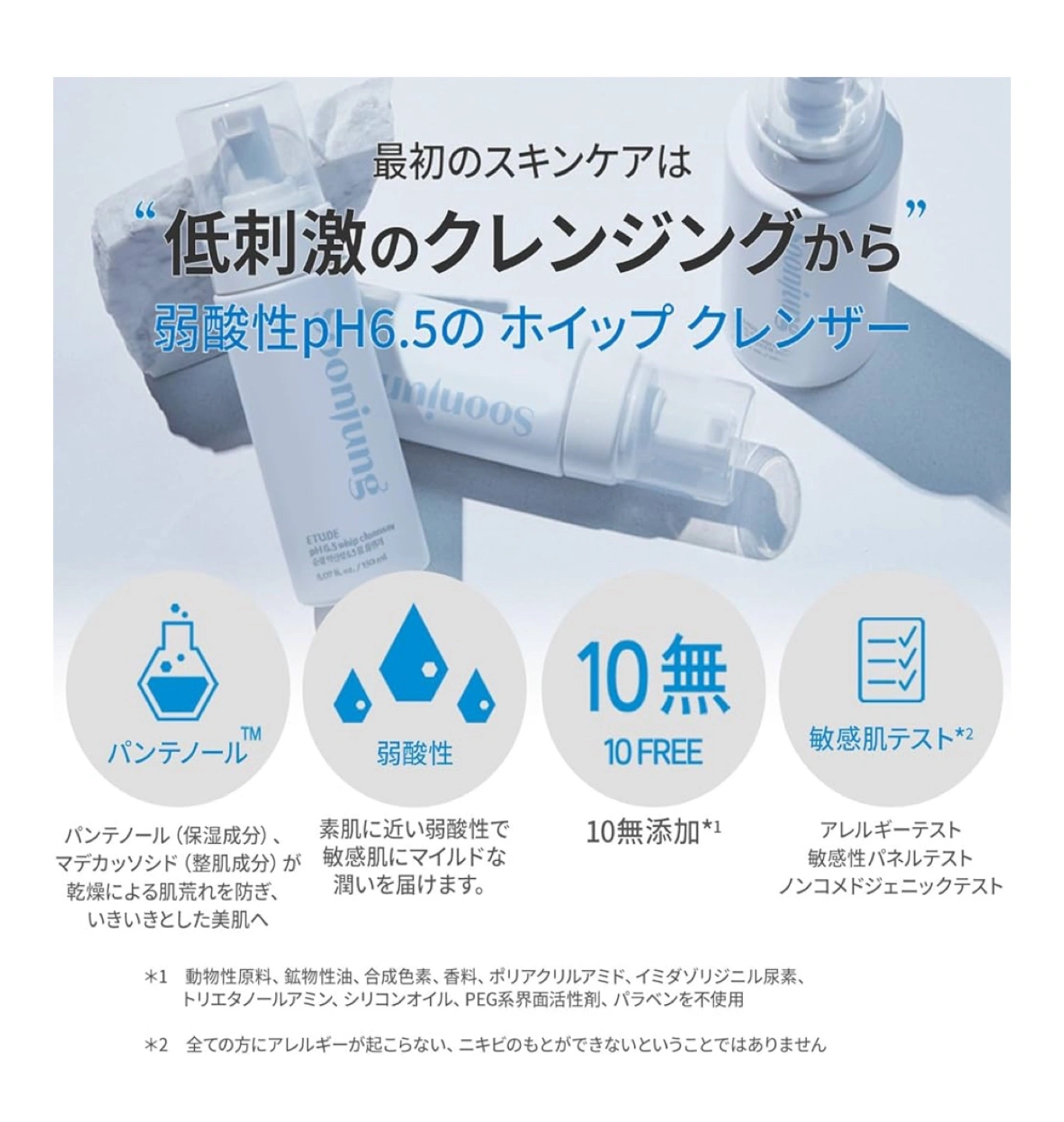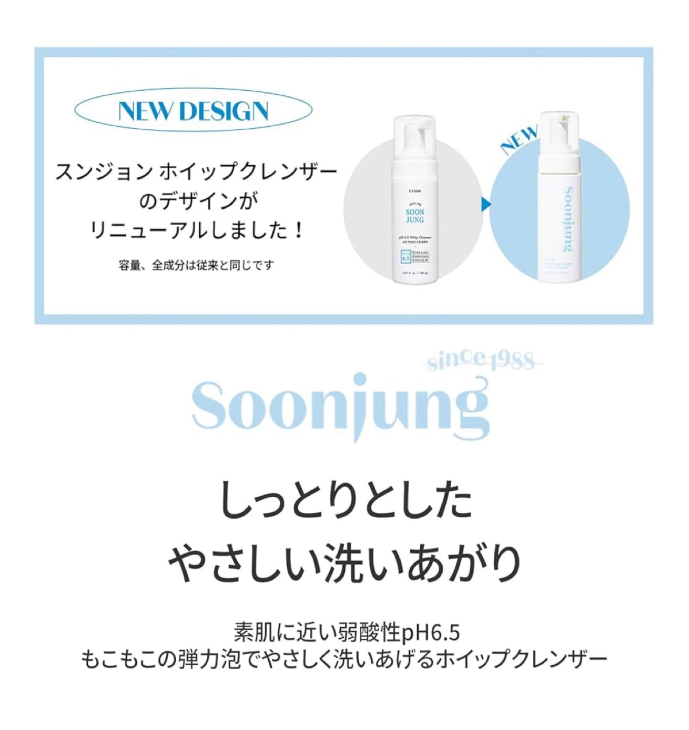 Etude Soonjung pH 6.5 Whip Cleanser. Gentle, low pH foam cleanser. New design. Vegan. 10 free formula.