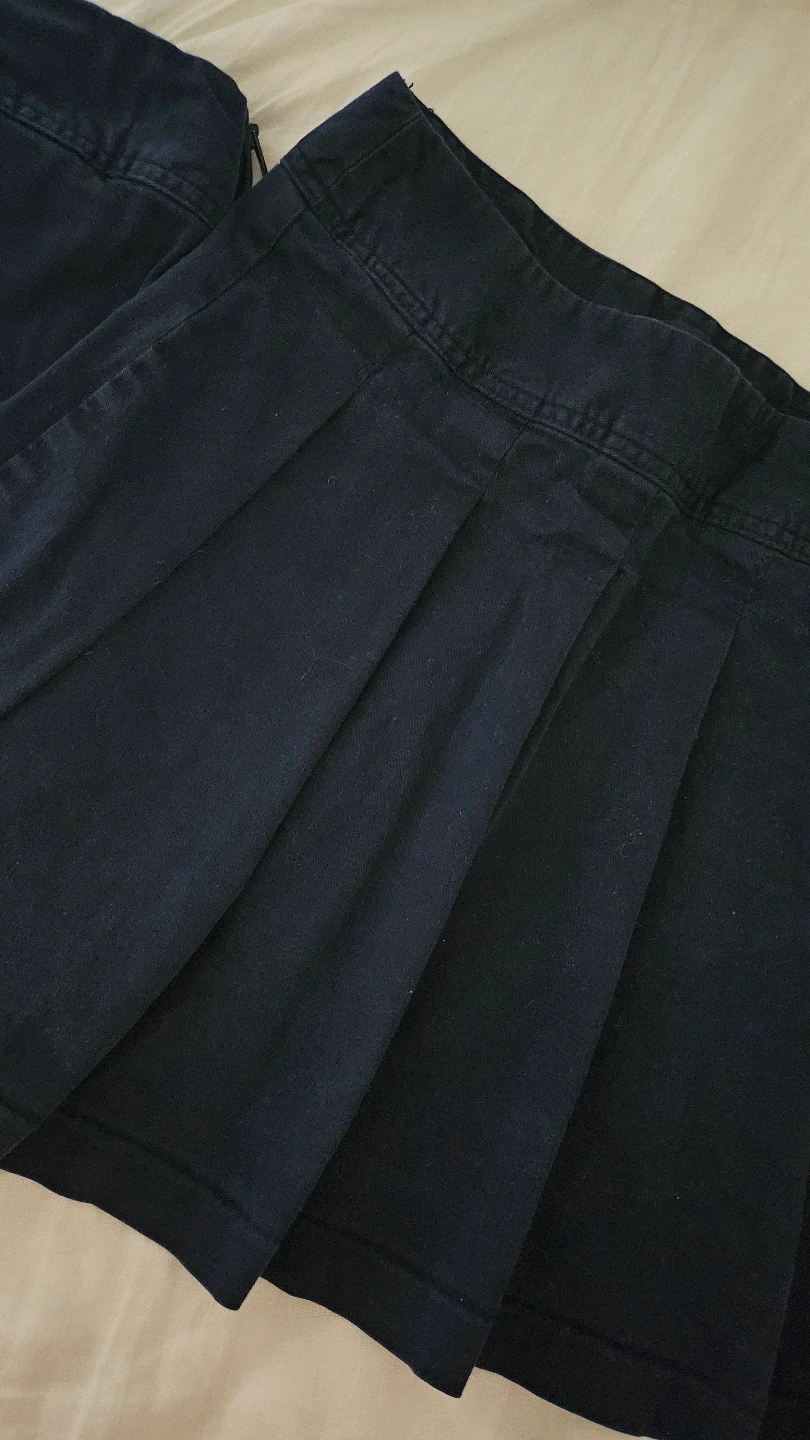 32Pack of 2 navy pleated uniform mini skirt. Size 14. Good condition.