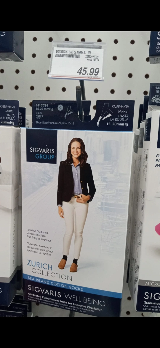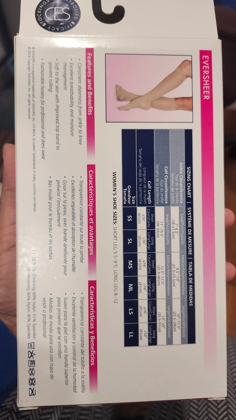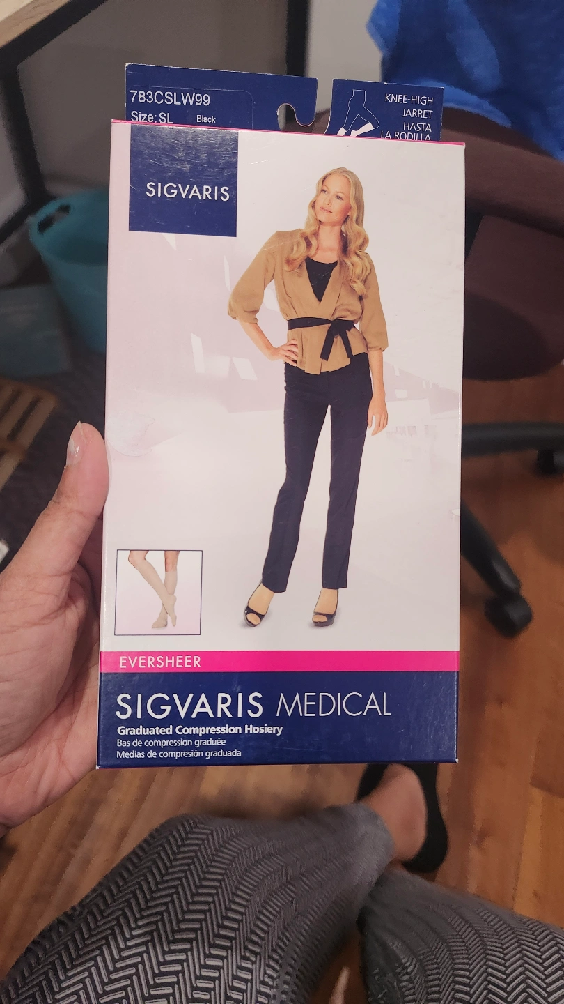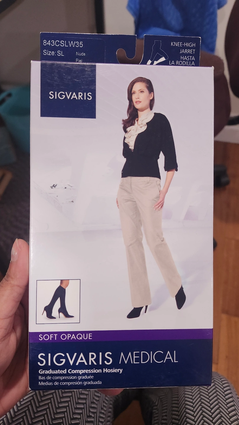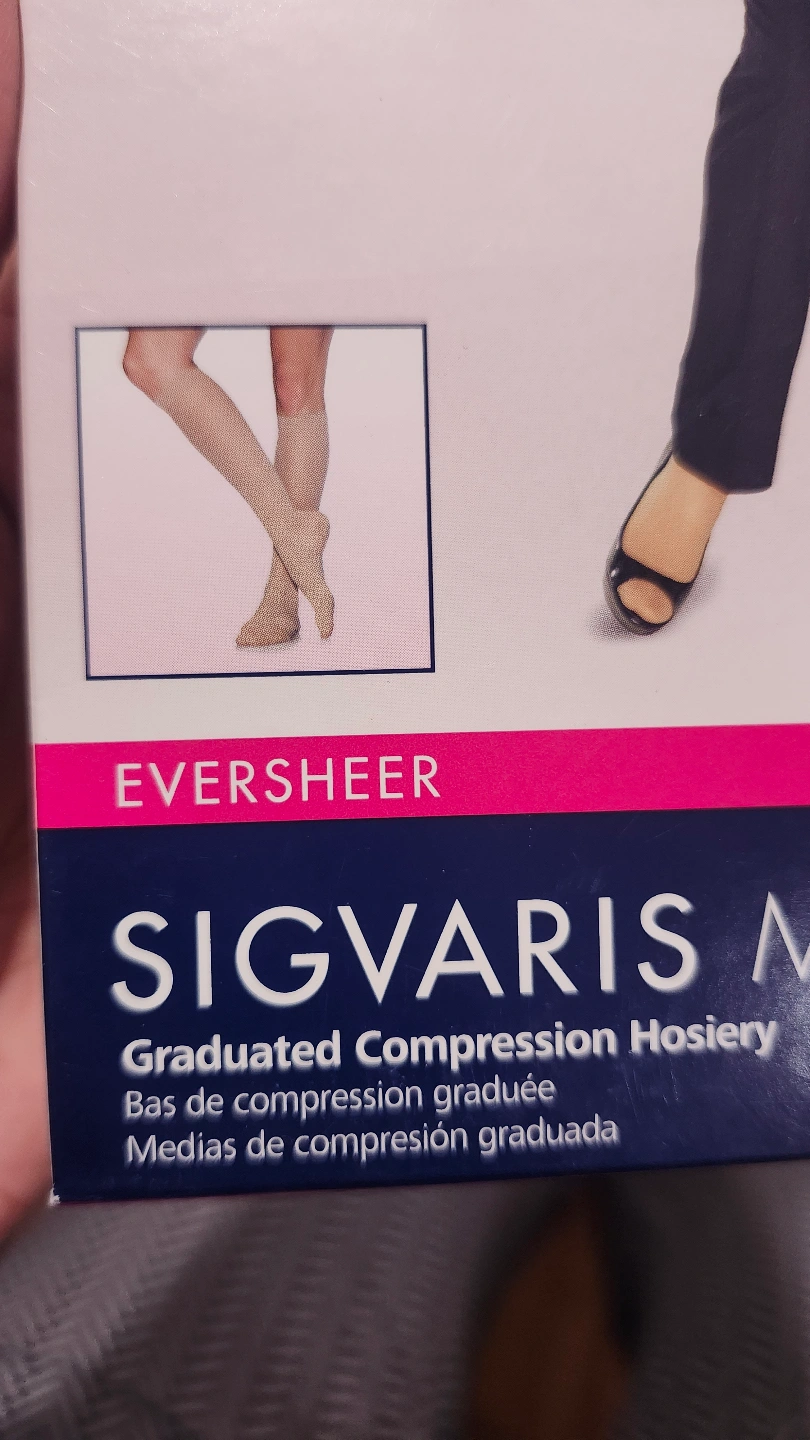 1000+New Sigvaris Medical graduated compression socks. Eversheer style. Knee-high length. Size small/medium. Black and nude colours available. original price was $40 pluzls tax 2 pieces in black and 1 available in bwige/nude shade.