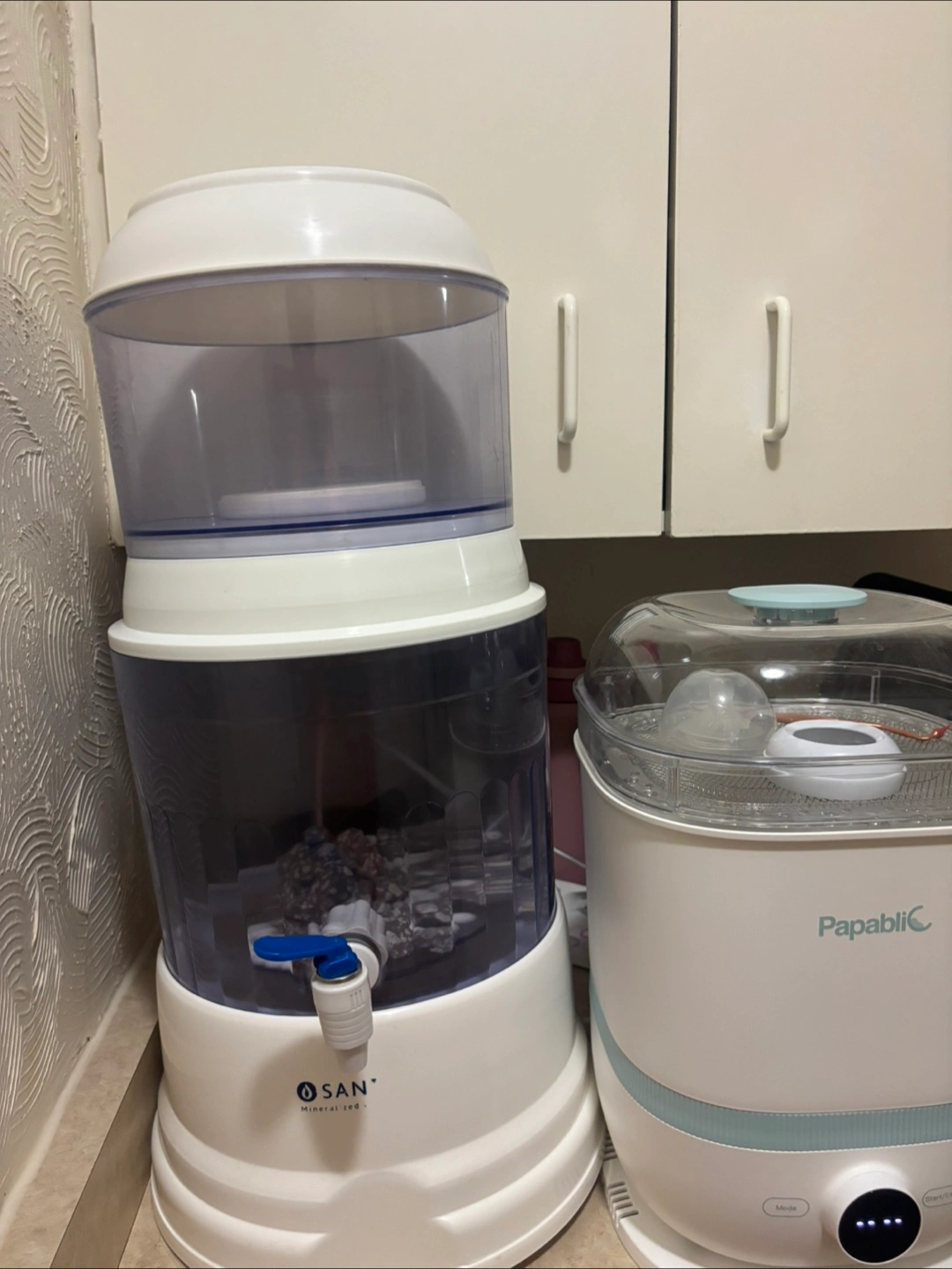 Countertop gravity water filter dispenser. Large capacity. Includes mineral stones and ceramic pre-filter (recently replaced). Excellent condition. Loved this but need the countertop space.