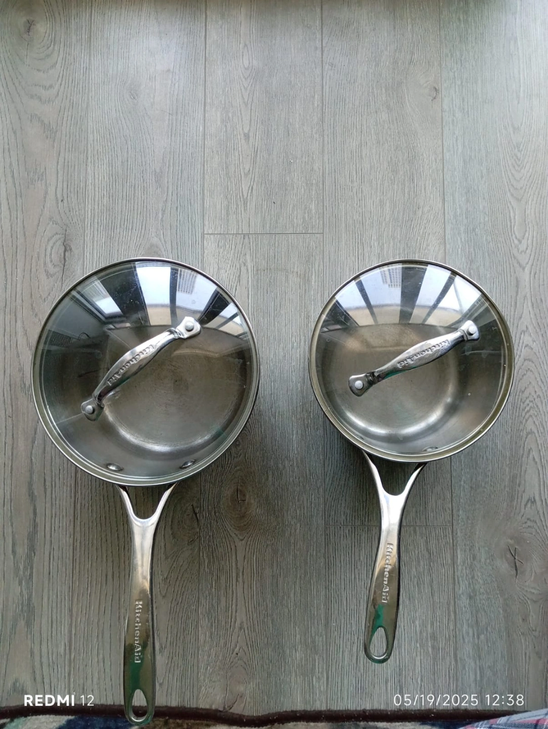 Two stainless steel saucepans. Matching glass lids included. Excellent for cooking on the stovetop.