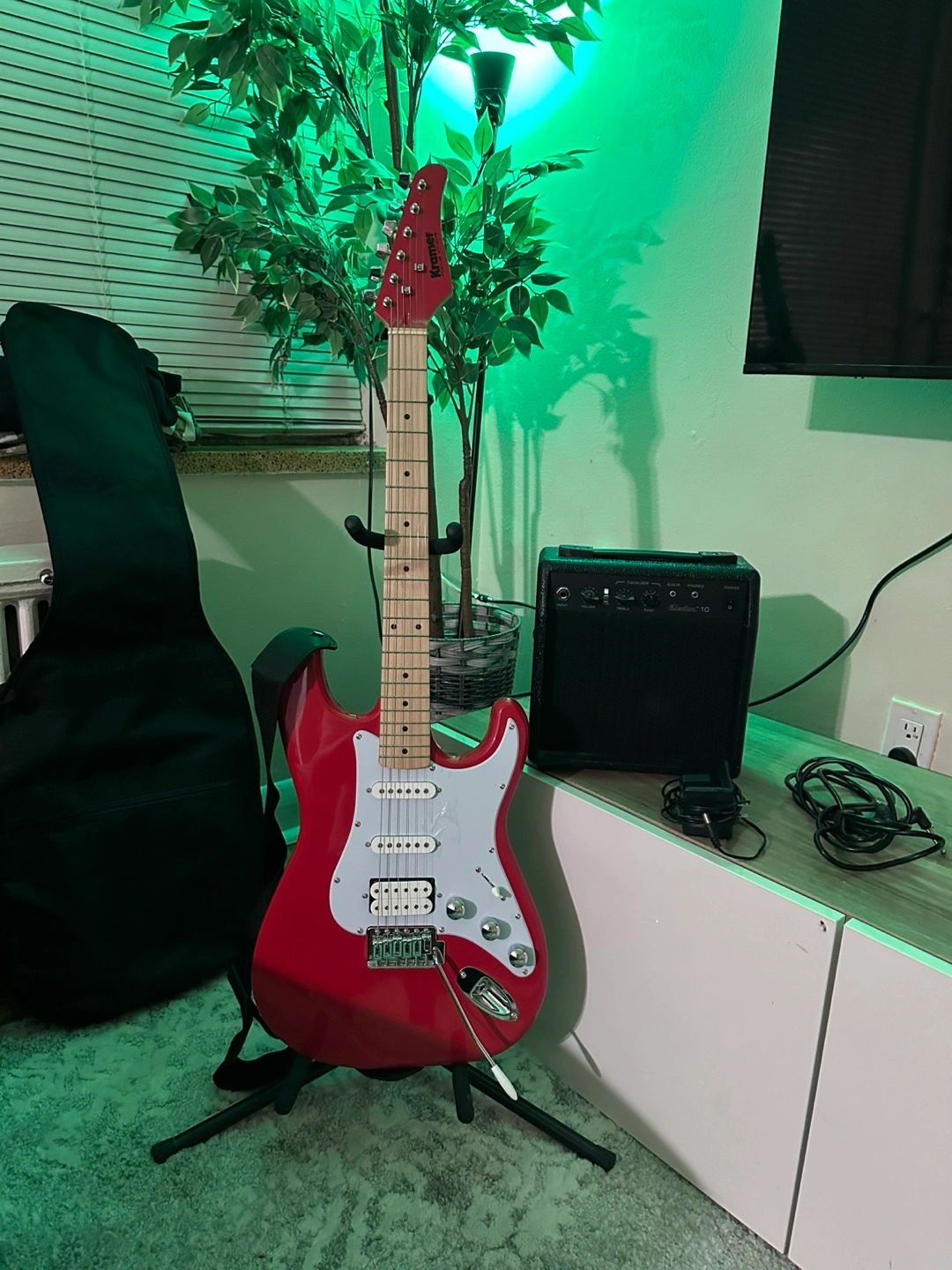 Kramer electric guitar, amplifier, gig bag, and cable and guitar stand. Like new condition no any issue Ready to play!
