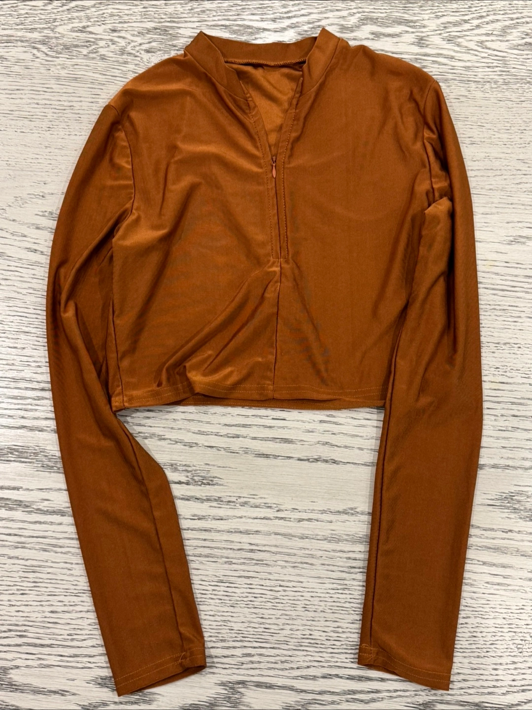 LIKE NEW brown longsleeve satin cropped zip up size small
