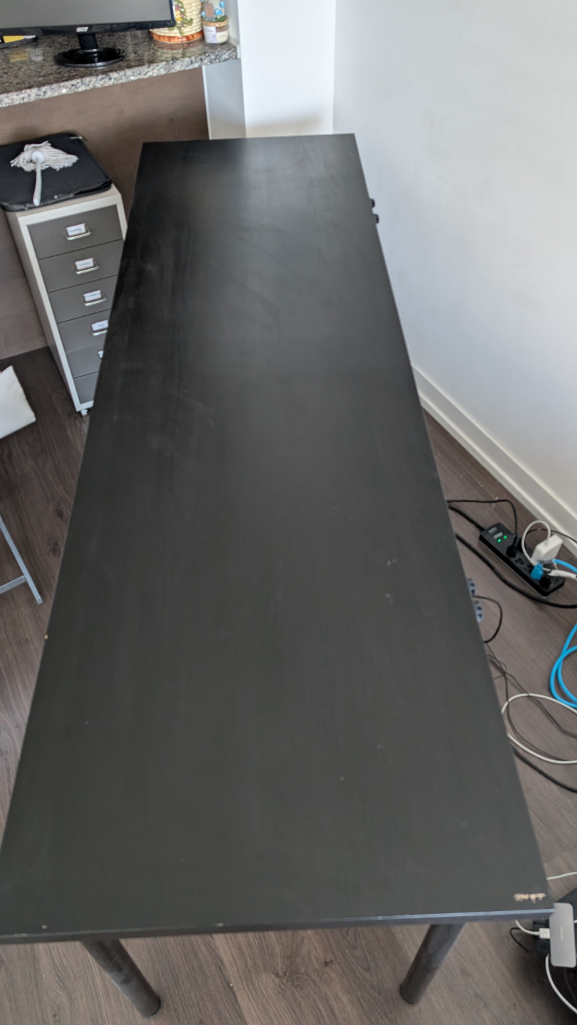 Tabletop, black-brown, 200x60 cm (78 3/4x23 5/8"). Leveling legs working as expected.