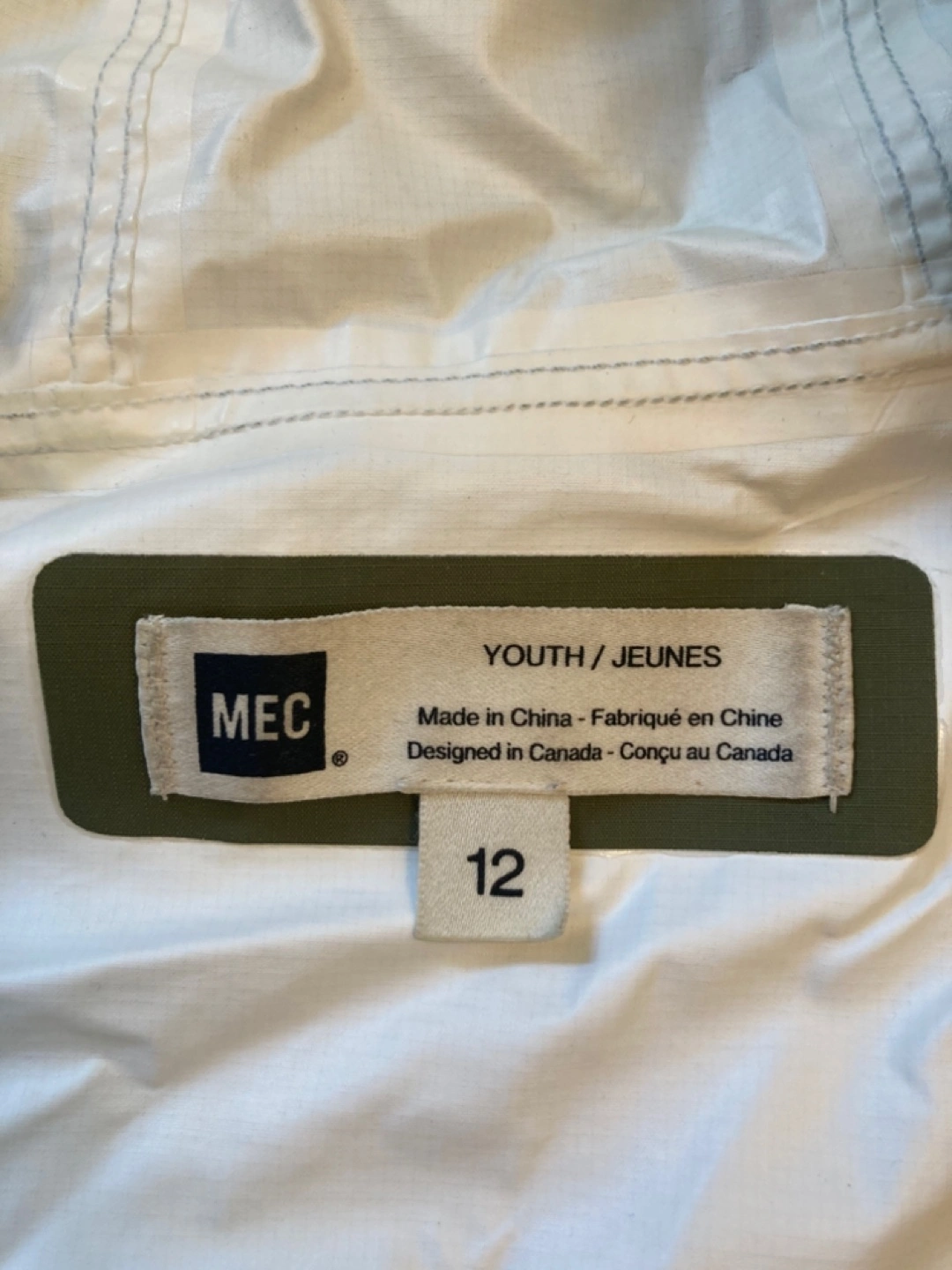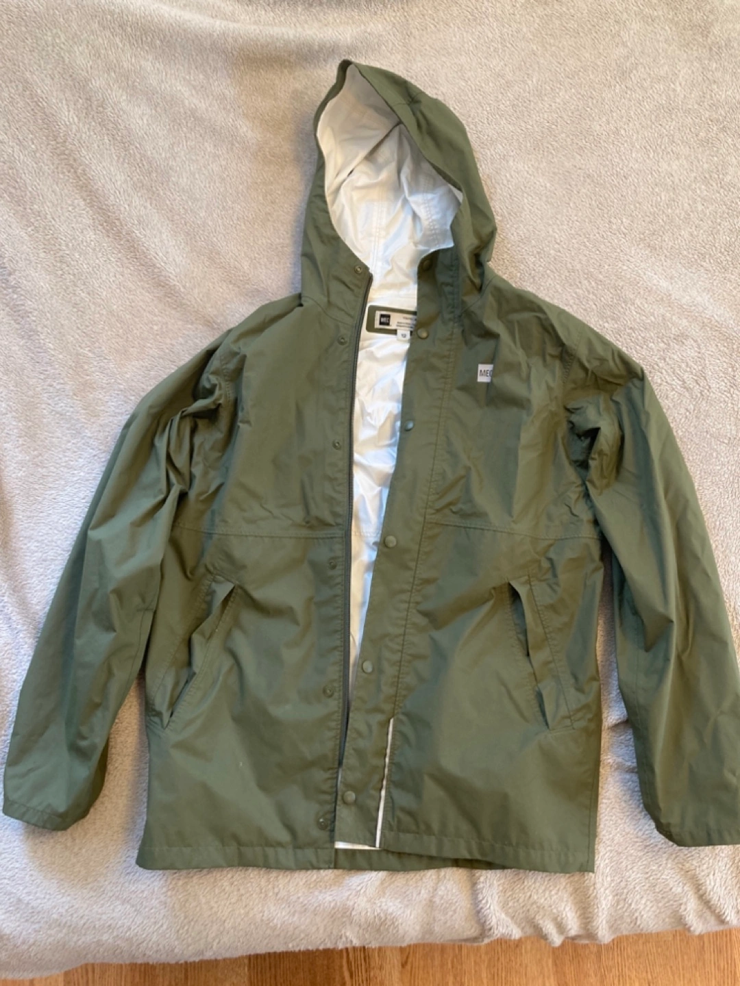 MEC Youth Size 12 Green Rain Jacket