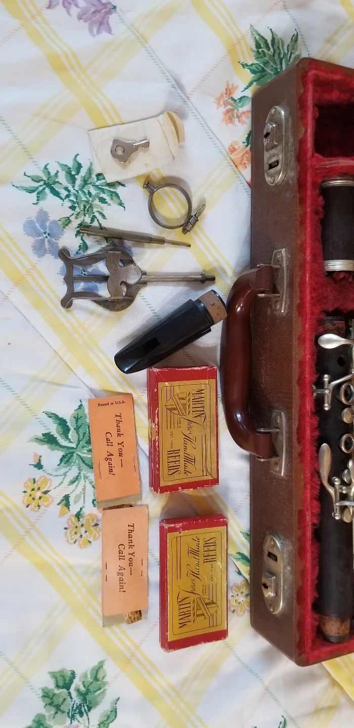 Antique clarinet, appears to be in good condition. Includes original hard case and box of reeds. Beautiful . Great for collectors or musicians.