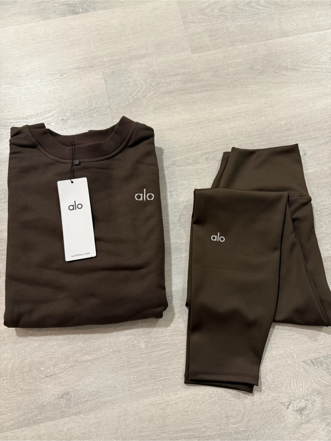 Alo Yoga Accolade Crew Neck Pullover Leggings Set - Espresso