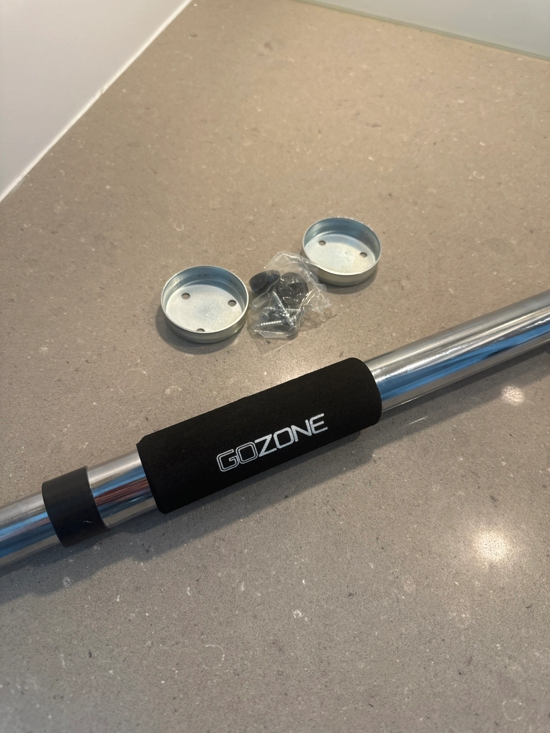 New, unused doorway pull-up bar. Chrome steel construction with foam grips. Includes all mounting hardware. Check out my other posts too as I am moving I have lots up for sale and am willing to do for less if you purchase more things at once.