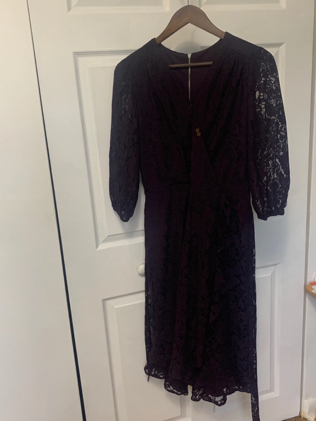 282Beautiful dark purple lace dress. Three-quarter sleeves.