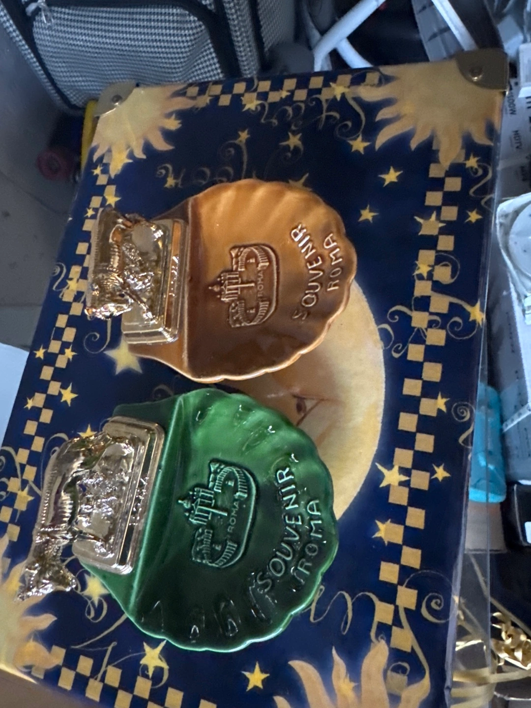 121Two ceramic magnets. Gold and green. Feature Roman architecture. Souvenir of Rome.