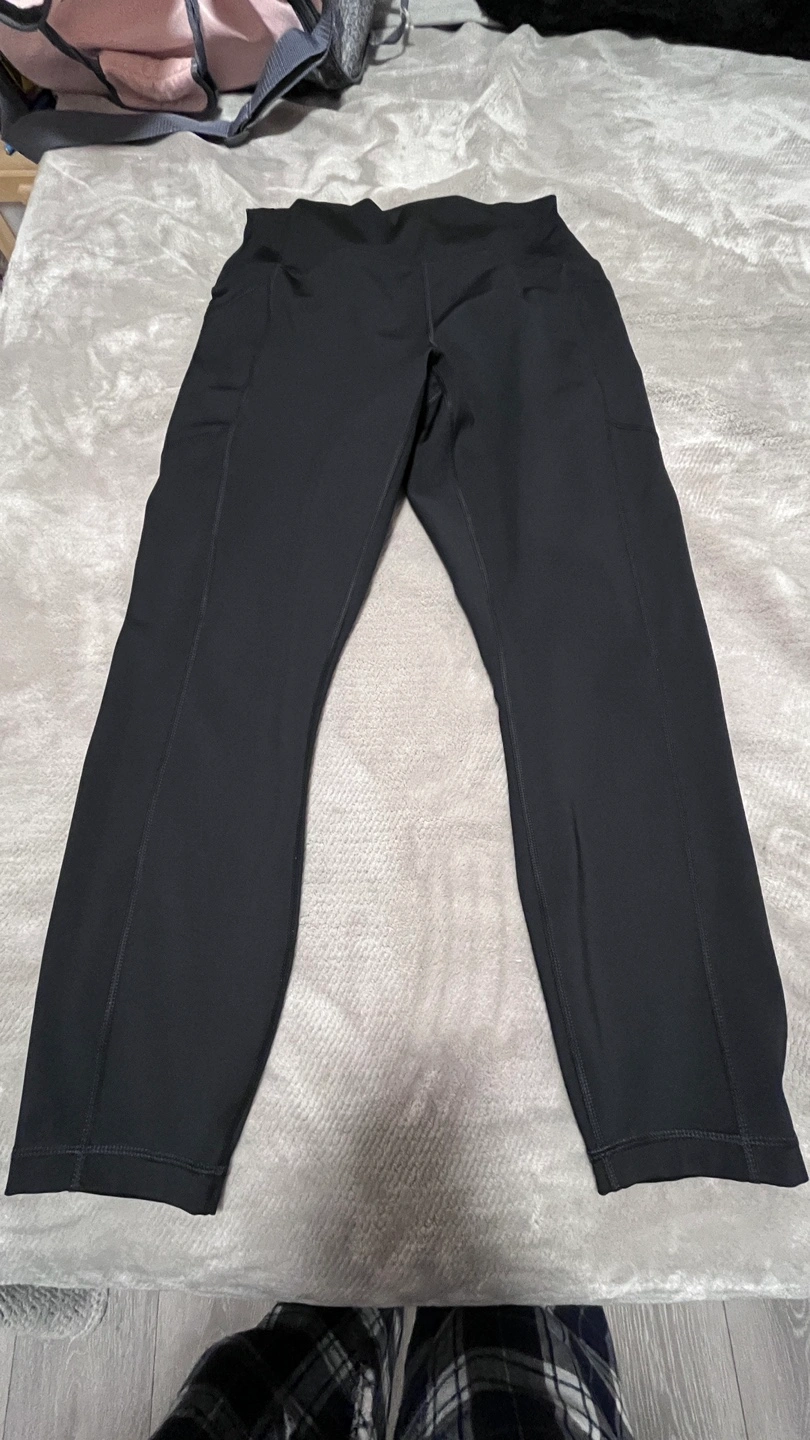 Black workout leggings. High-waisted. Side pockets. Size large. 75% polyester, 25% spandex. Made in Vietnam. Sport leggings. Comfortable and new .