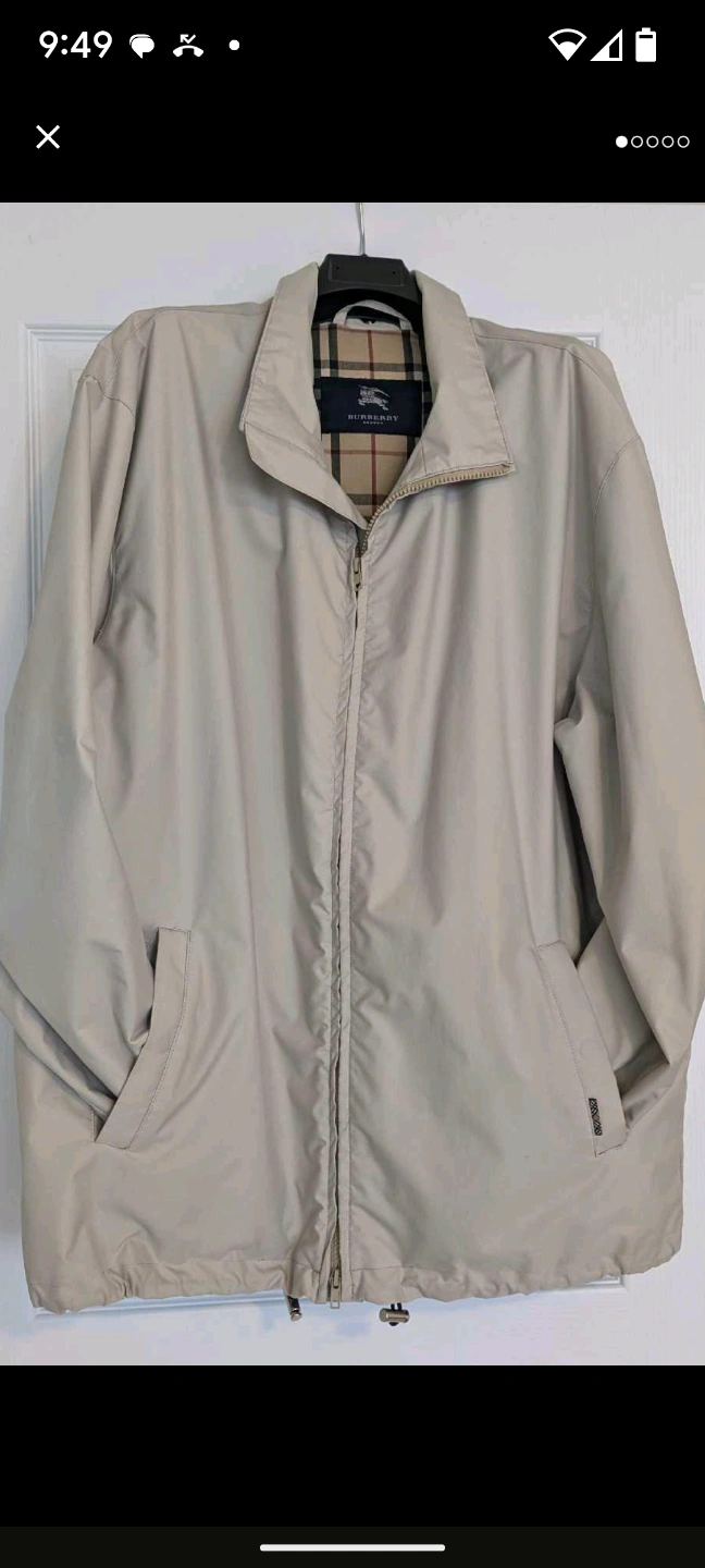 Men's Authentic Classic Burberry London bomber beige jacket. Almost new, maybe worn once. Full zip closure. Features a classic Burberry check lining. Two front pockets. Bought in NYC for $$$$.