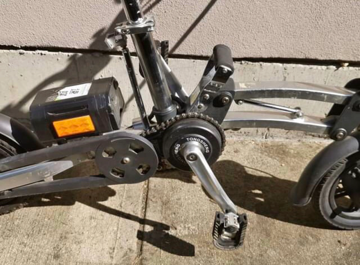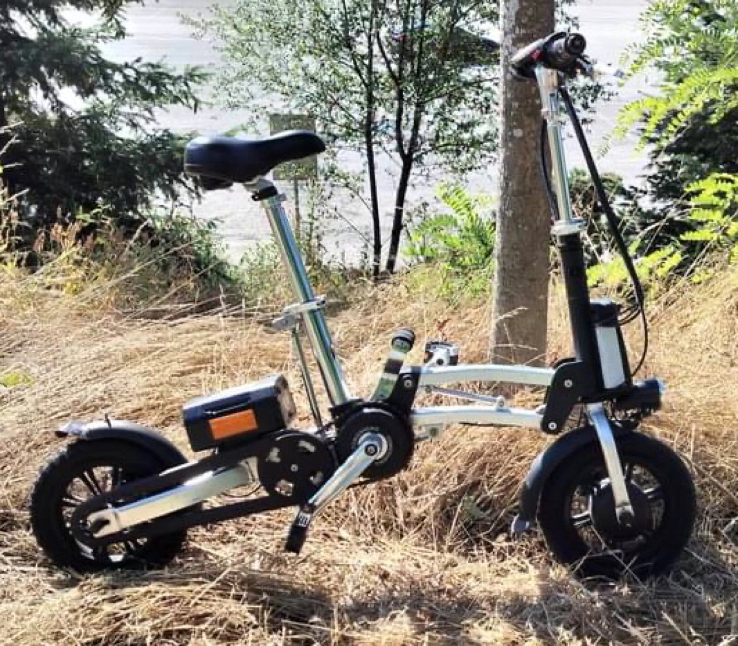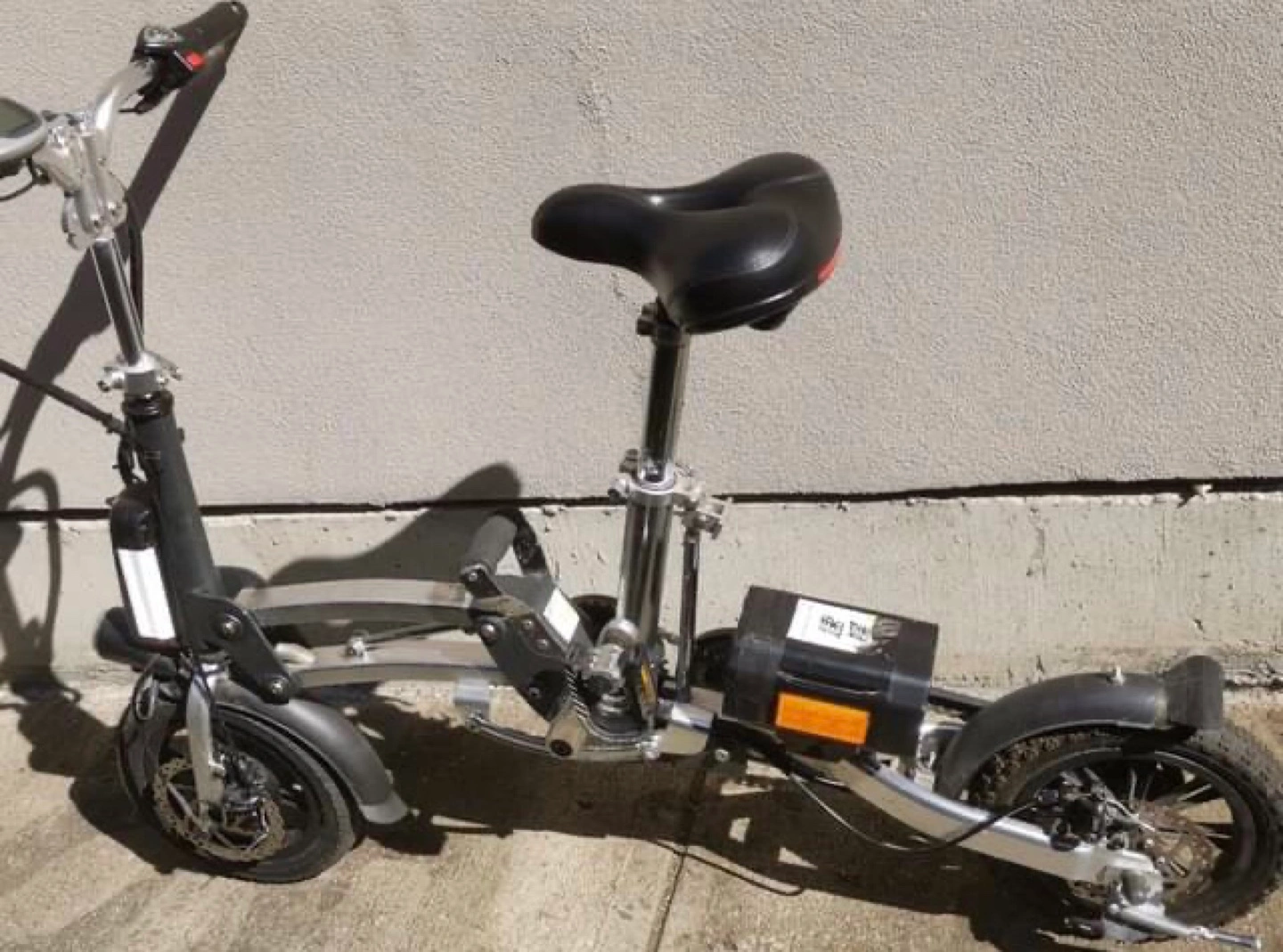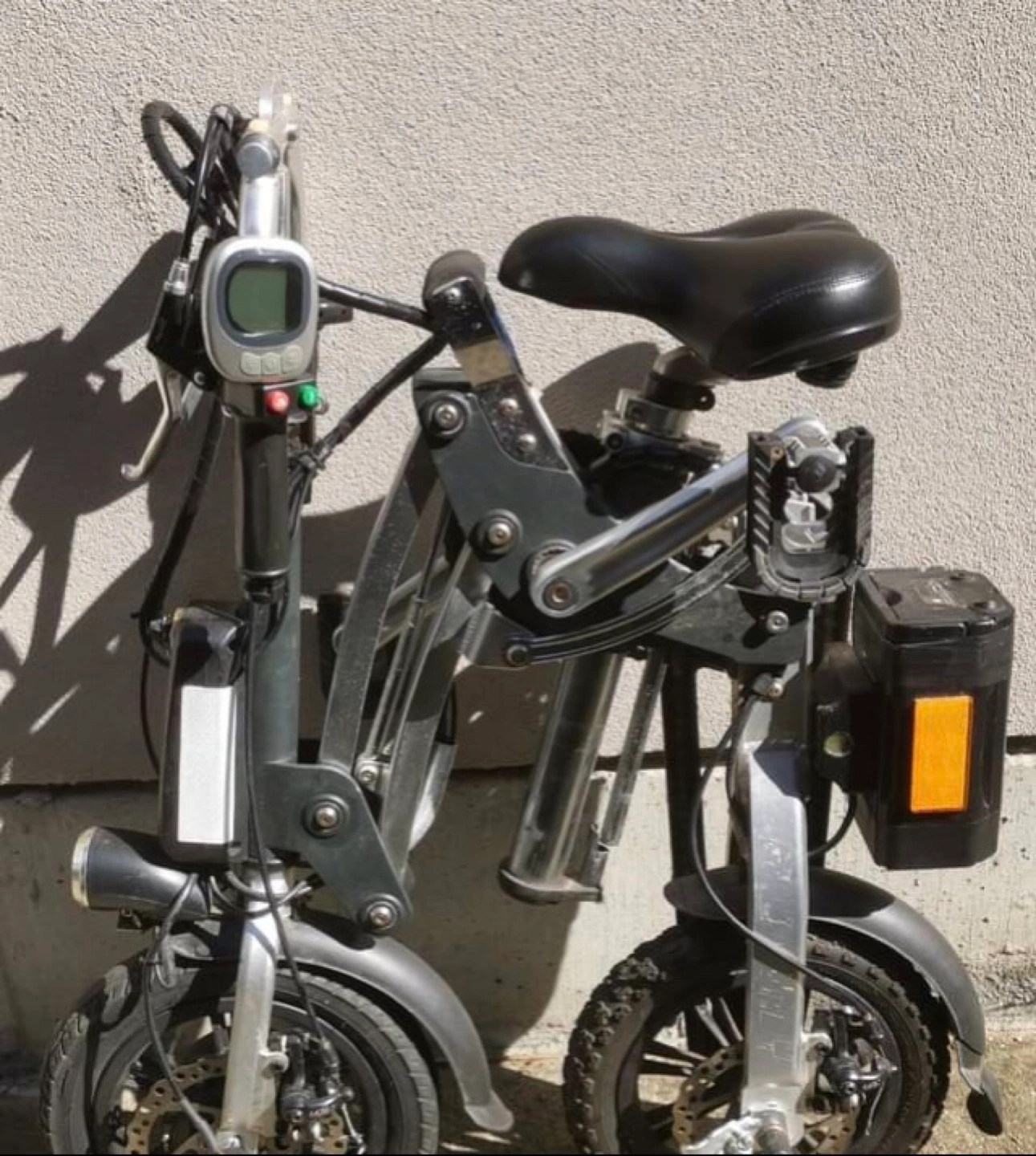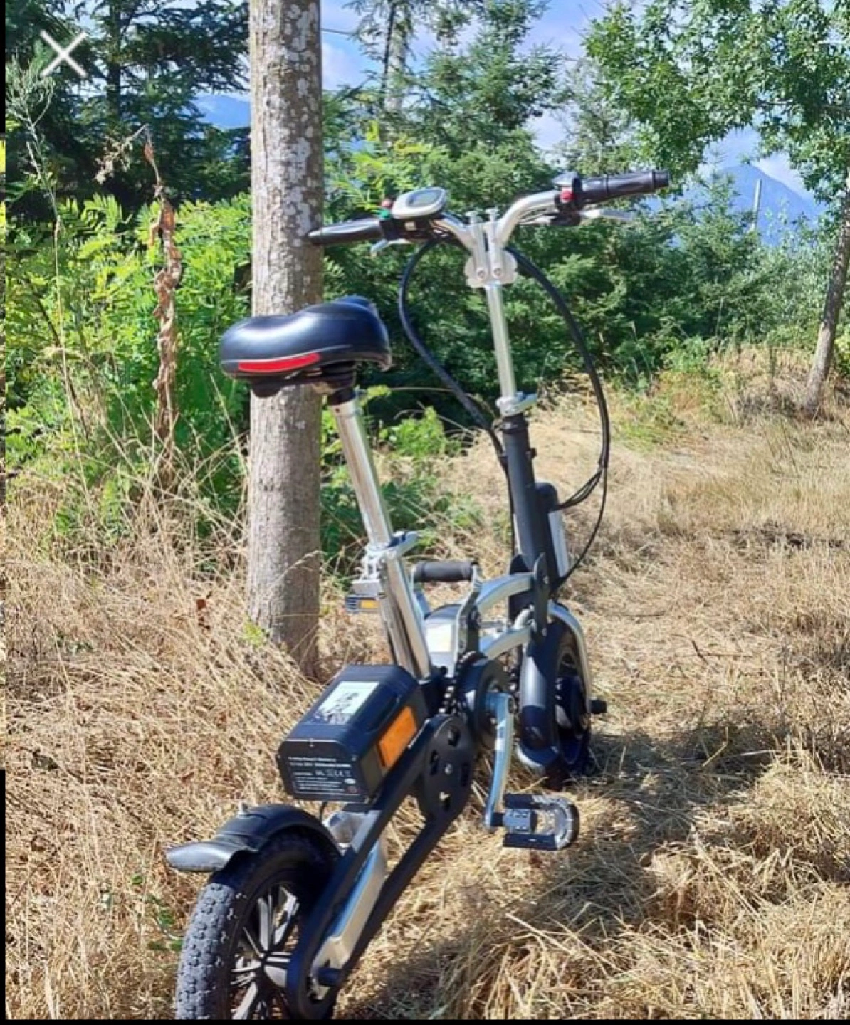 Lightweight folding electric bike. Features a digital display, and disc brakes. Great for commuting or short trips. Last picture courtesy of Markeplace, same model but in Orange…..
