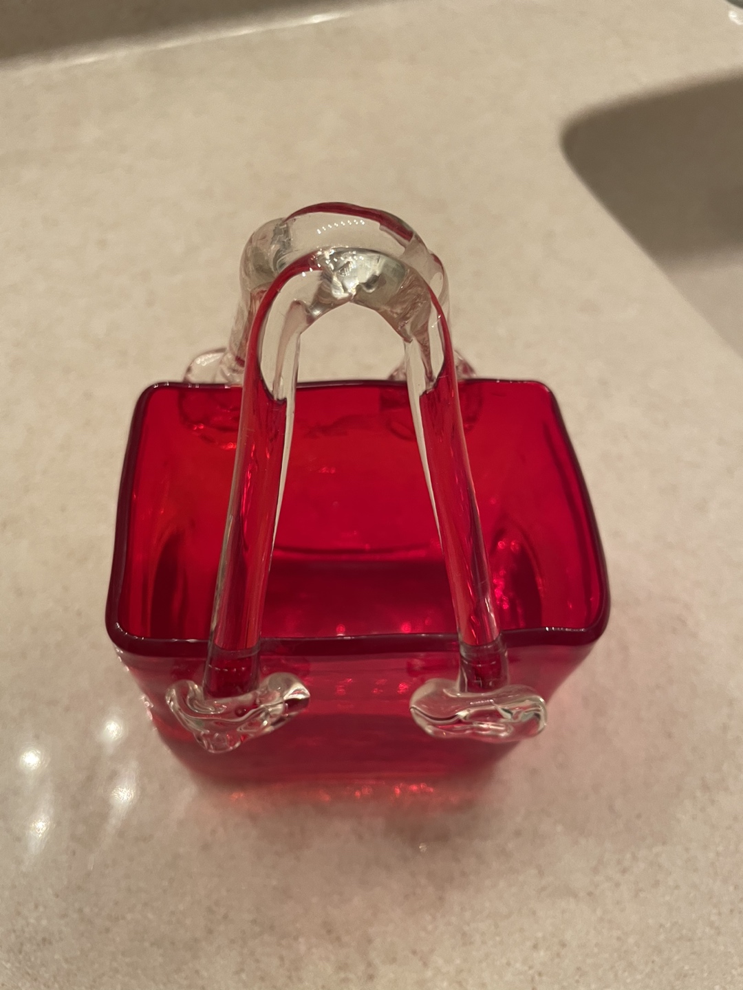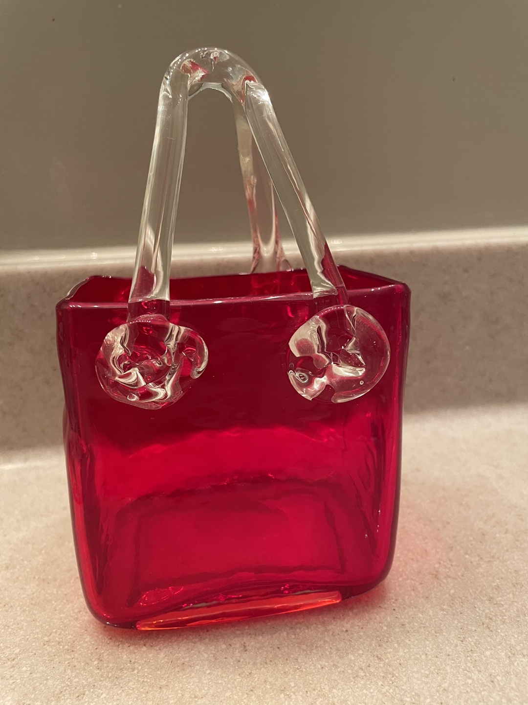 87Beautiful blown glass Collectors piece Red handbag with clear straps