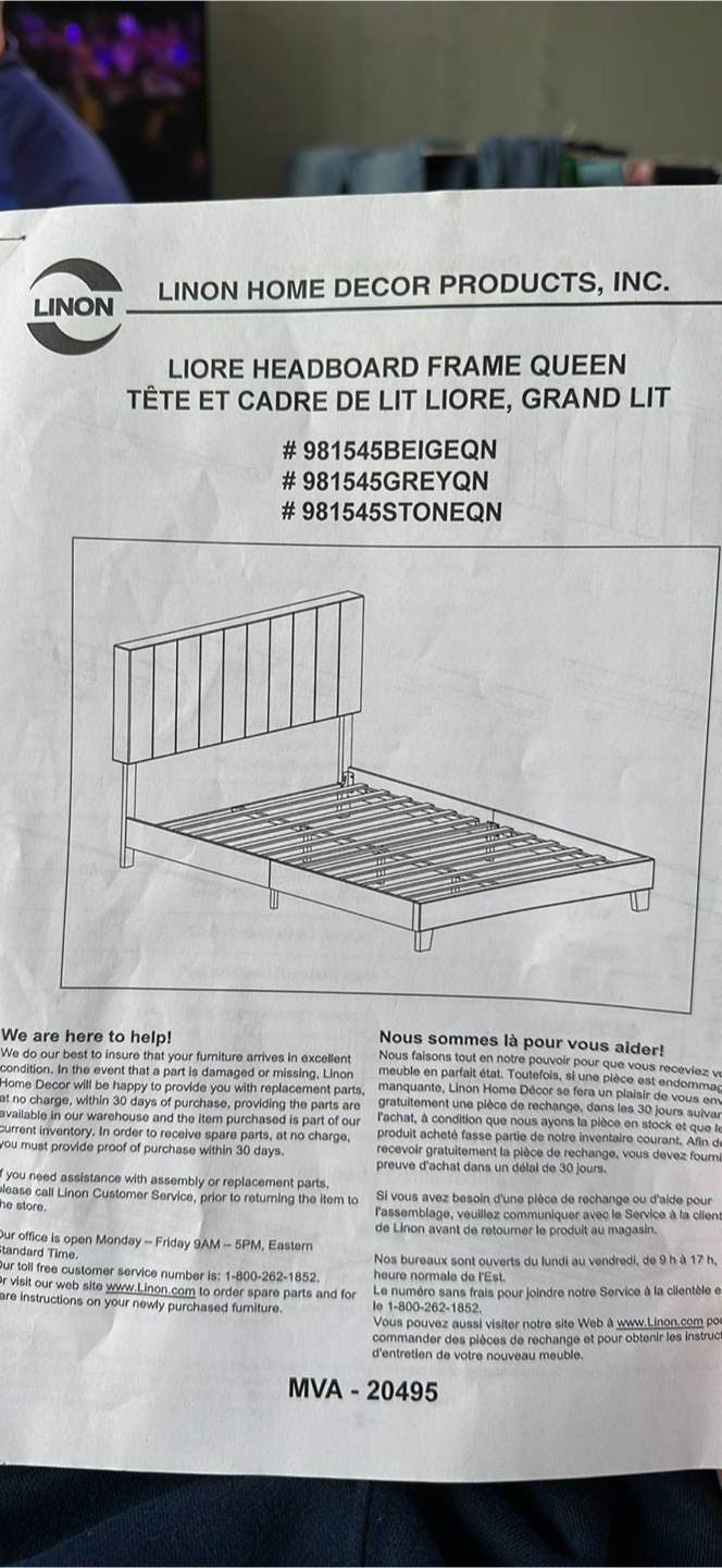 Linon Liore grey queen sized bed frame
