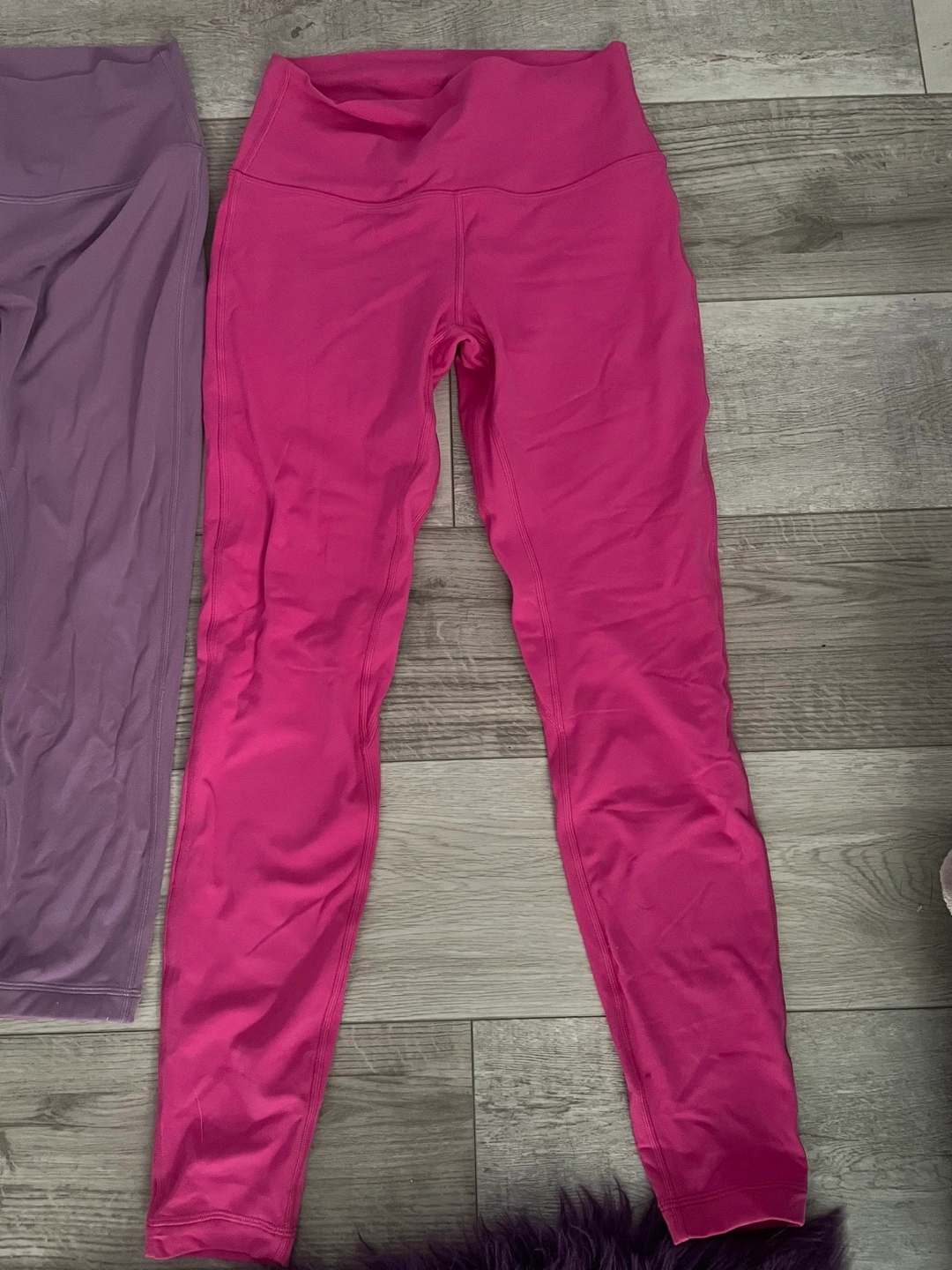 Bundle includes three items: pink and purple leggings, black shorts. All size 8. High-waisted. Workout wear. Good condition.