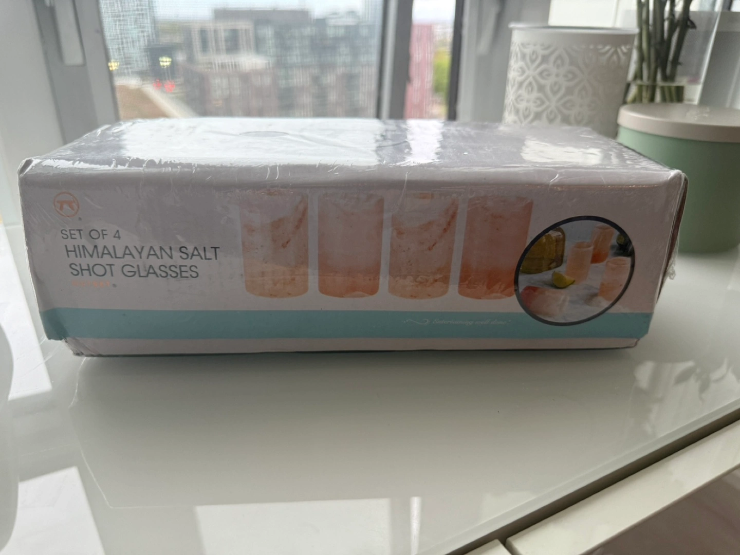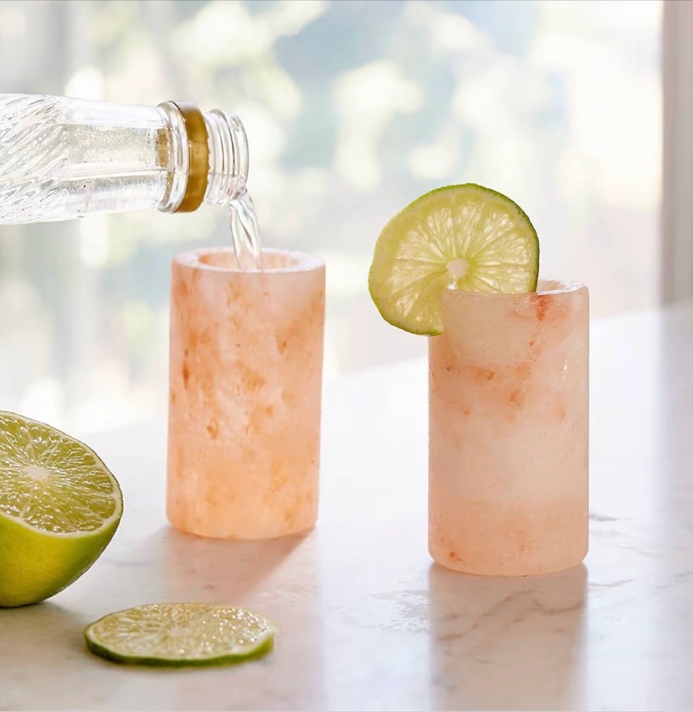 1000+Brand new, set of four Himalayan pink salt shot glasses. Unique and stylish glassware for tequila or other spirits. Perfect for entertaining.