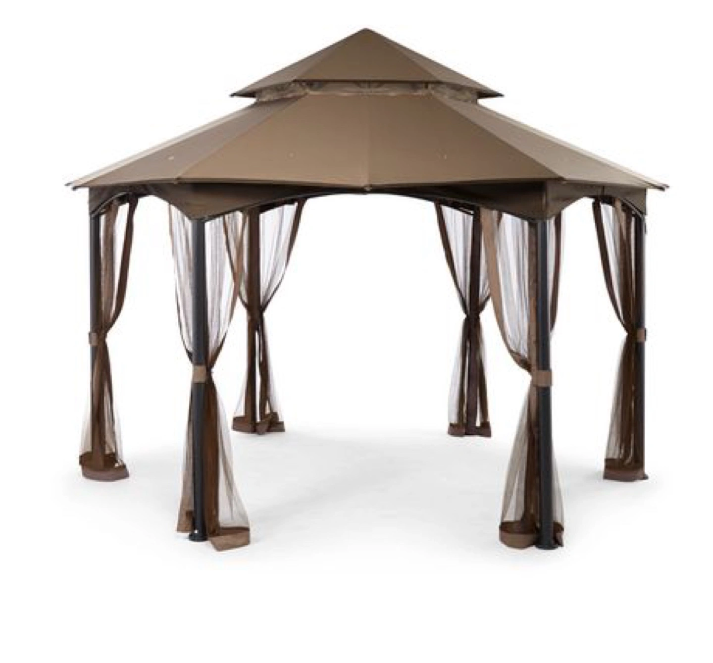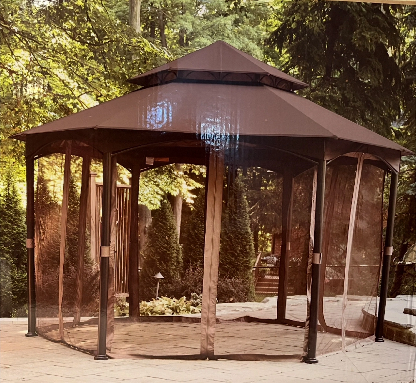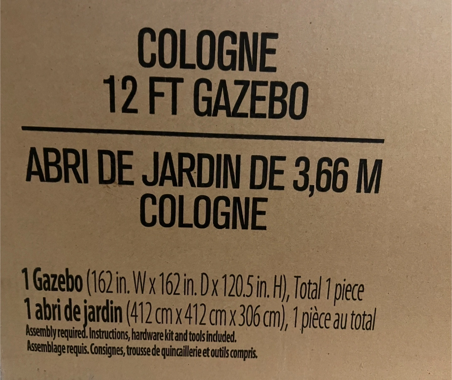 HomeTrends gazebo. Never assembled. Box is heavy. Mosquito netting alone is worth $200. Can deliver to most GTA locations.