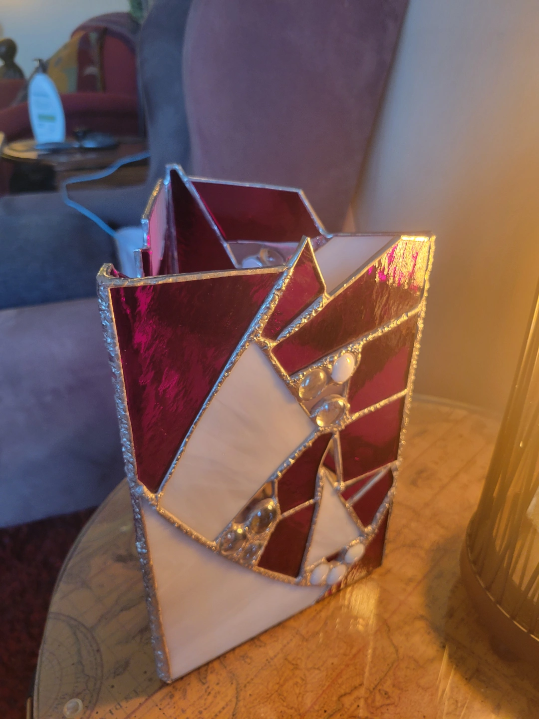 Stained Glass Candle Holder with mirrored bottom