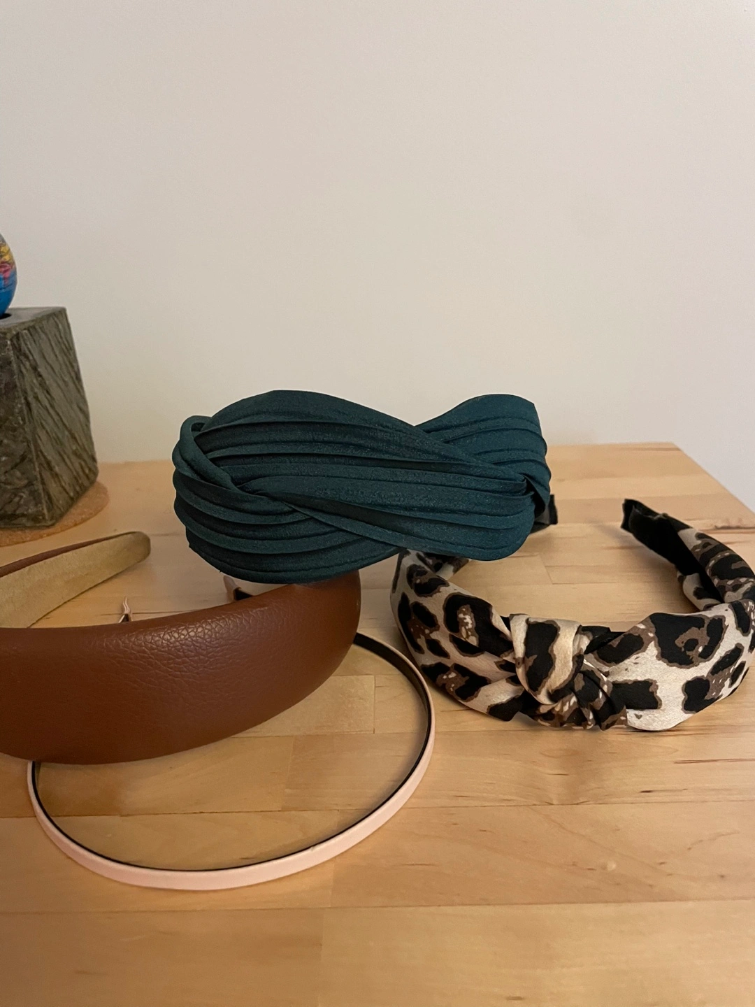 Five Headbands: Brown leather, Teal, Leopard Print