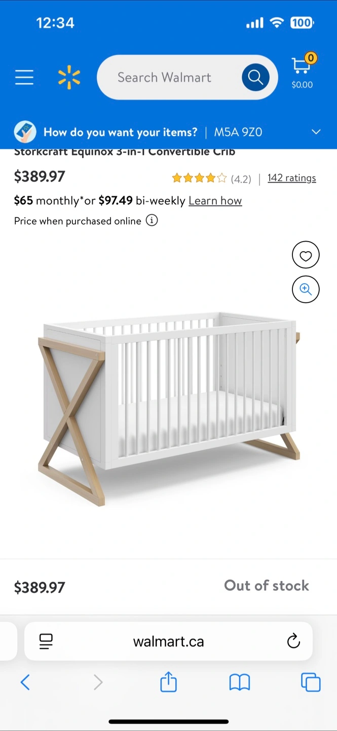 New Storckart Equinox 3-in-1 convertible crib. White & Vintage Driftwood colour. Still in original packaging. Never assembled. Very slight damage during shipping.