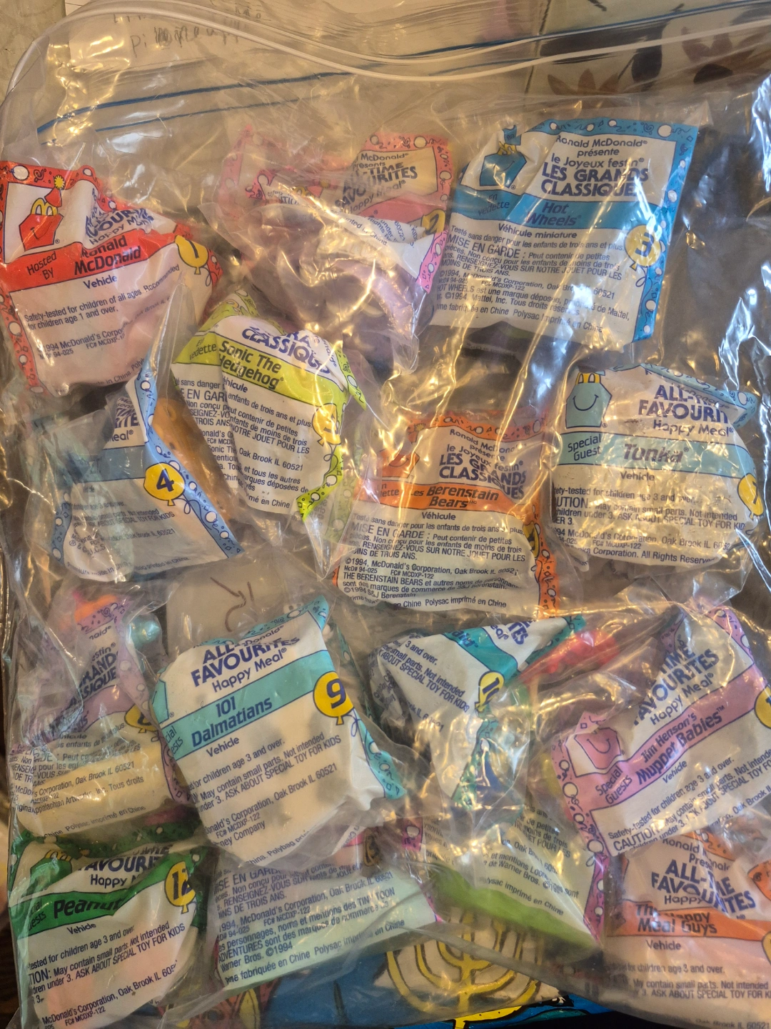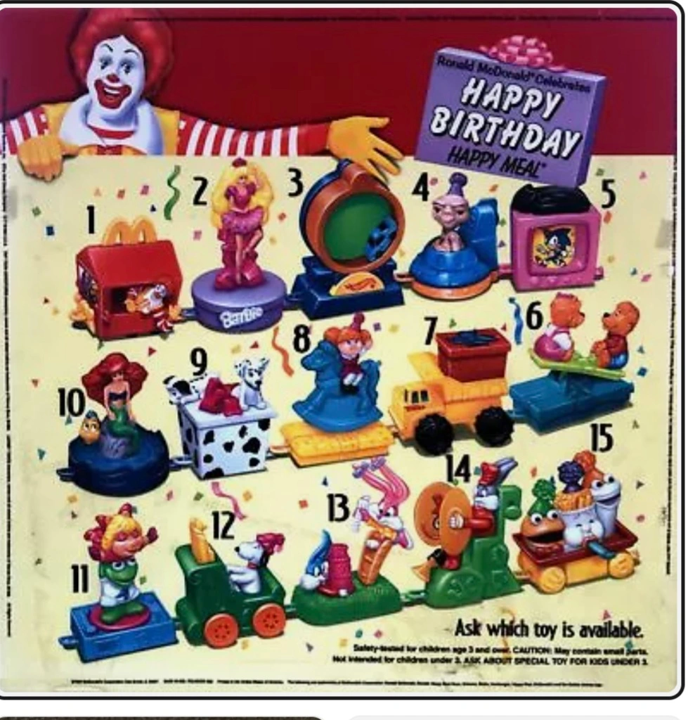 a complete unopened set of 15 vintage McDonald's Happy Meal toys that connect to form a giant train !