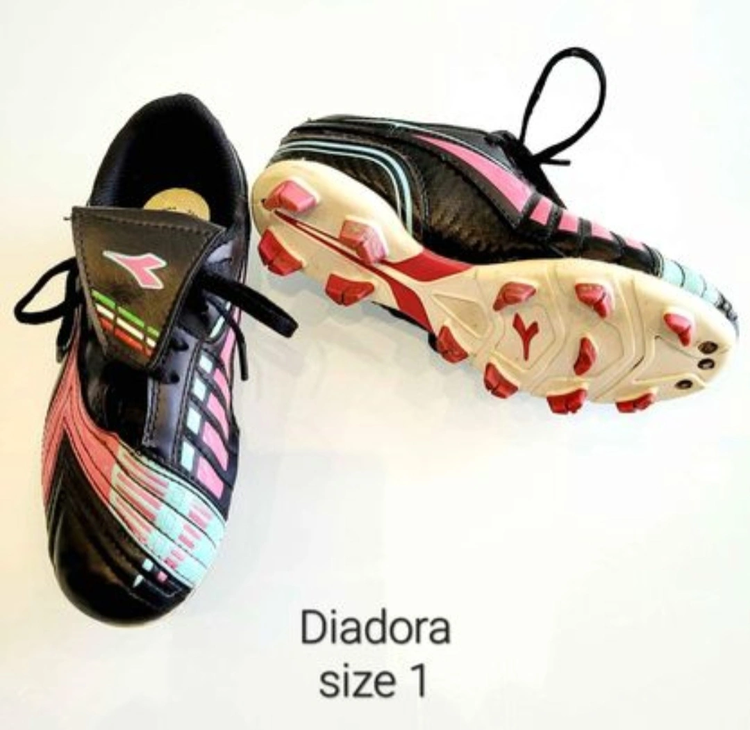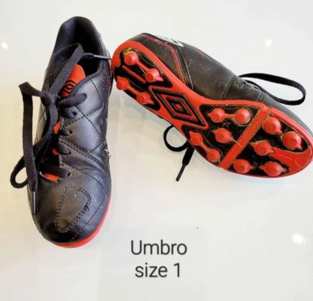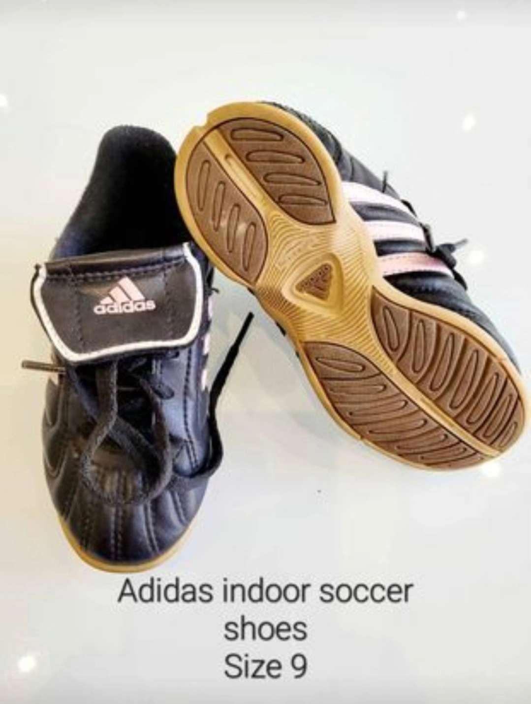 Kids soccer cleats. Sizes and brands vary. Adidas size 1 -$20 Adidas indoor size 9 -$15 Adidas size 13 -$20 Umbro size 11, 1 (SOLD) and 3 -$15 Diadora size 1 -$20 (SOLD) Pre-owned in excellent condition.