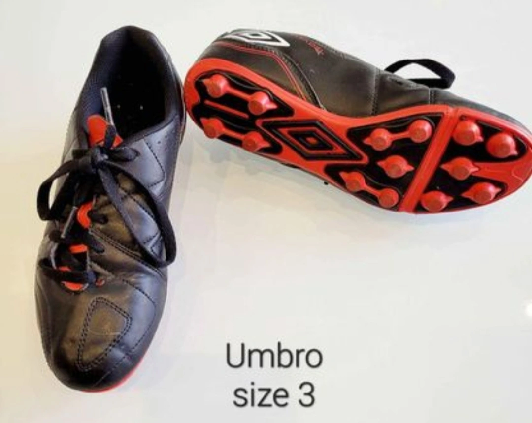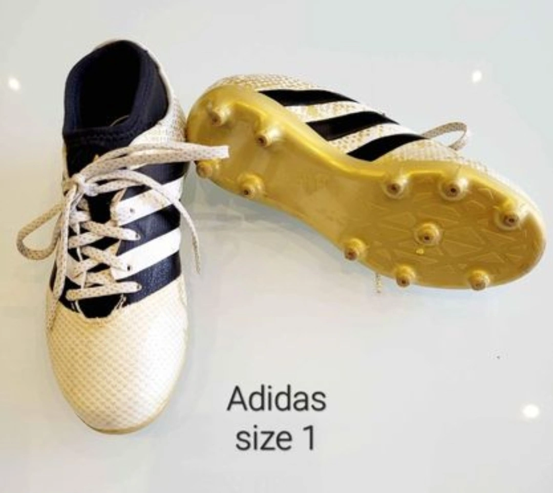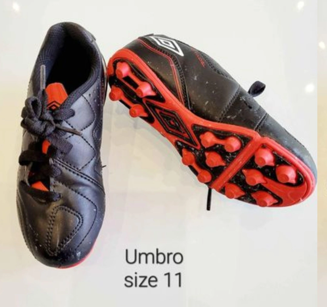 Kids soccer cleats. Sizes and brands vary. Adidas size 1 -$20 Adidas indoor size 9 -$15 Adidas size 13 -$20 Umbro size 11, 1 (SOLD) and 3 -$15 Diadora size 1 -$20 (SOLD) Pre-owned in excellent condition.