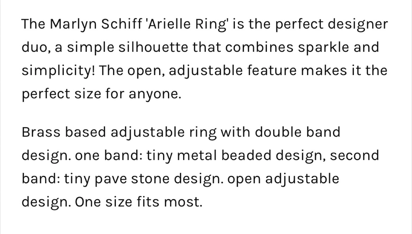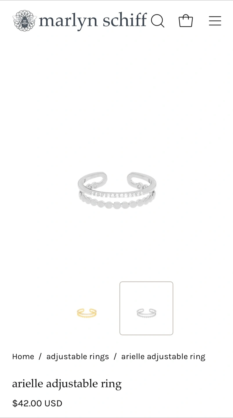 The Marlyn Schiff 'Arielle Ring' is the perfect designer duo, a simple silhouette that combines sparkle and simplicity! The open, adjustable feature makes it the perfect size for anyone. 😊