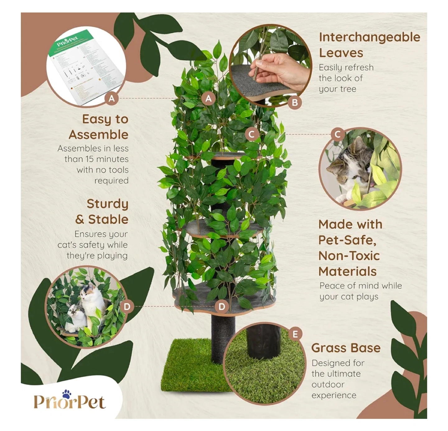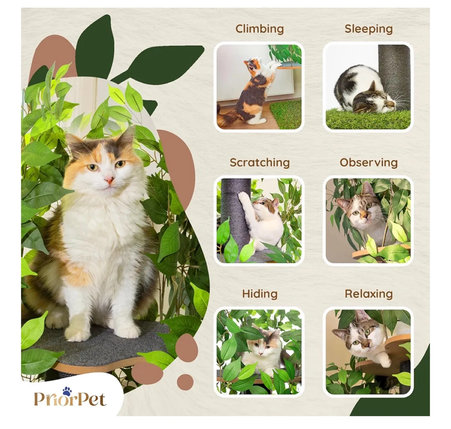 Cat Tree Scratching Post for Climbing, Hiding and Sleeping - Cat Tower for Indoor Cats with Interchangeable Leaves - Multilevel, Easy to Assemble - Pet-Safe Materials, Durable and Sturdy Construction