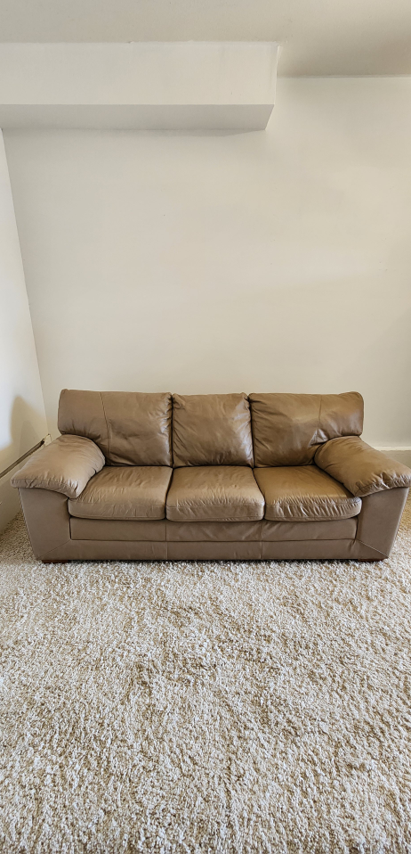 Selling our 3 seater brown leather sofa. It is in great condition and I can deliver it for free in Vancouver and I'll help bring it in too.