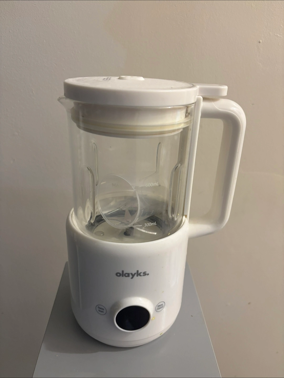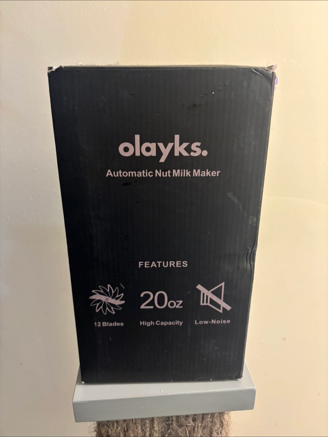 Olayks automatic nut milk maker. 20oz capacity. Features 12 blades. Low-noise operation. Includes user manual. White colour.