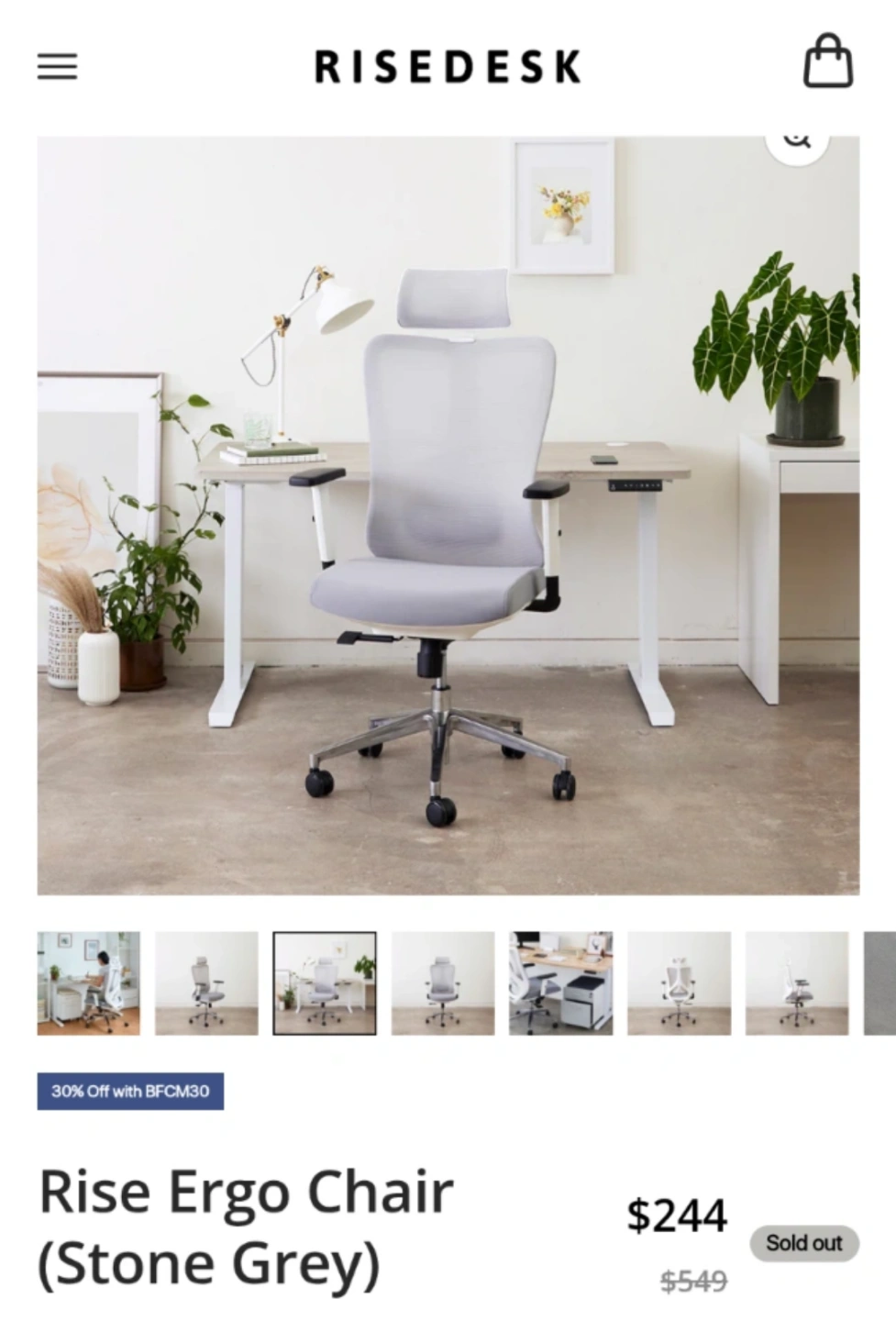 RISEDESK Ergonomic Desk Chair - Stone Grey