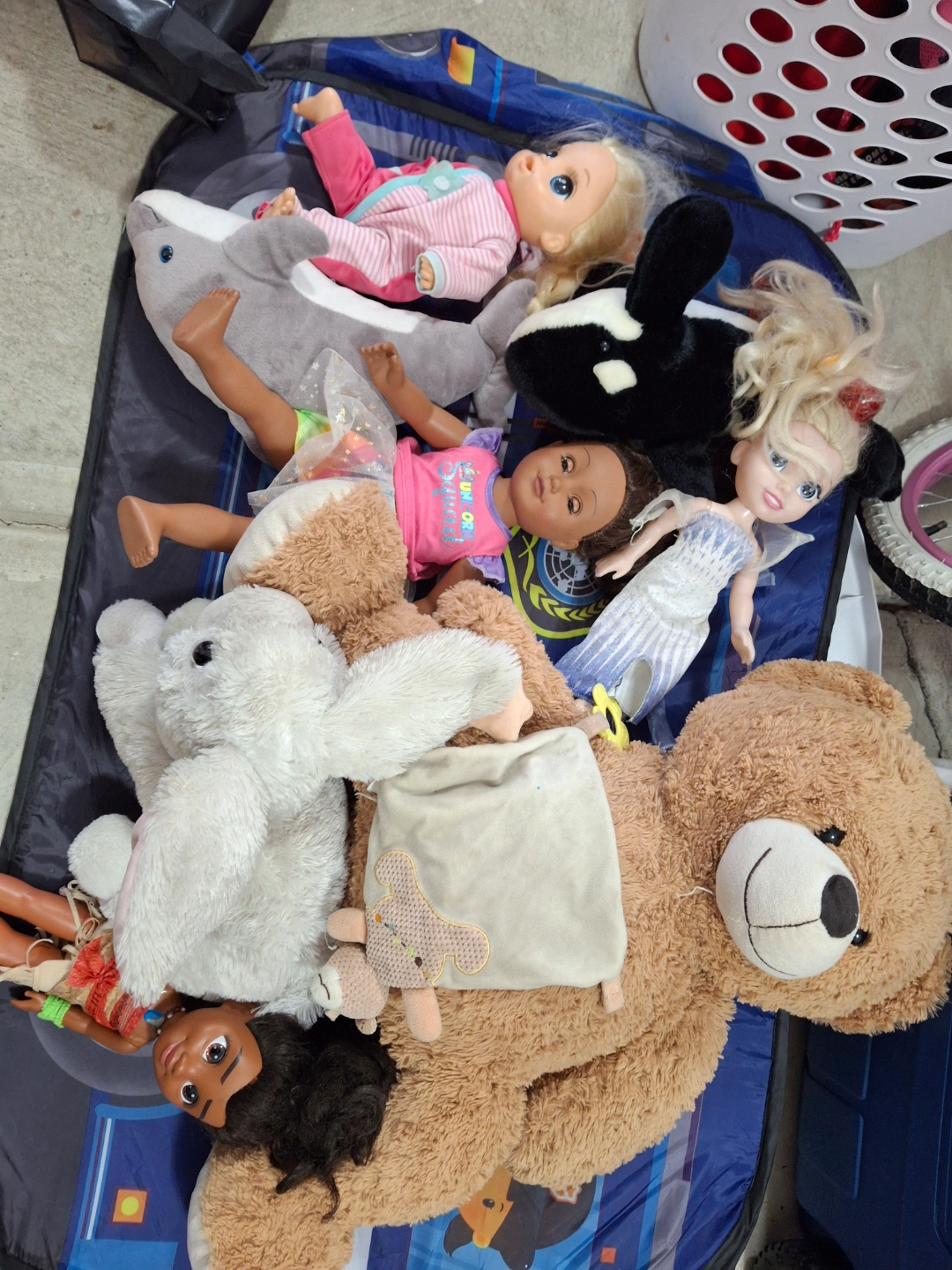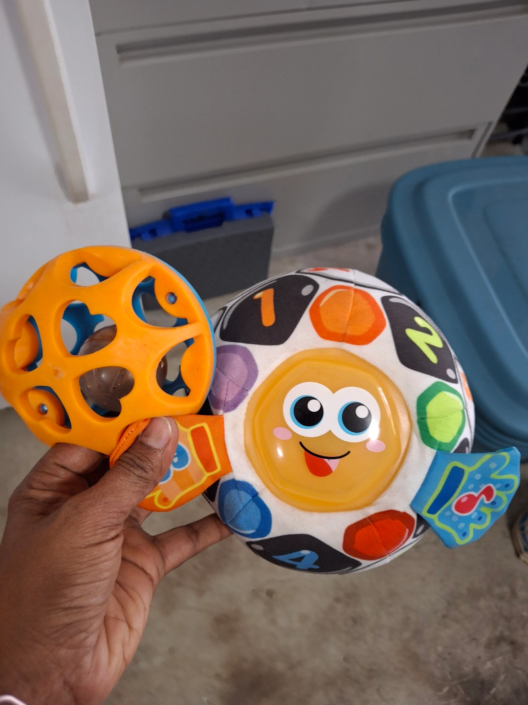 Adorable baby toy set. Includes a colourful rattle ball and a soft plush toy with light-up features. Great for sensory development and playtime fun. Gently used, excellent condition.
