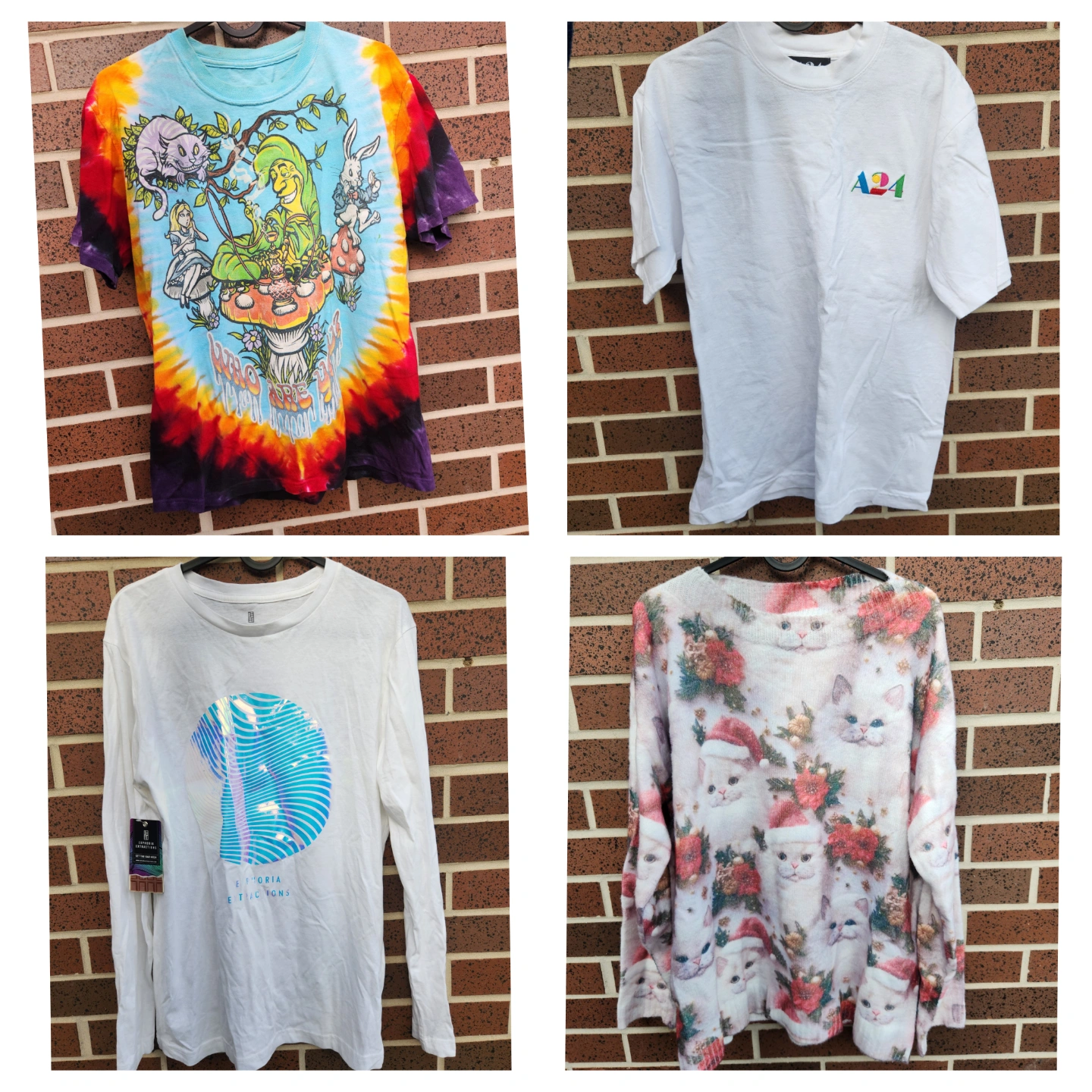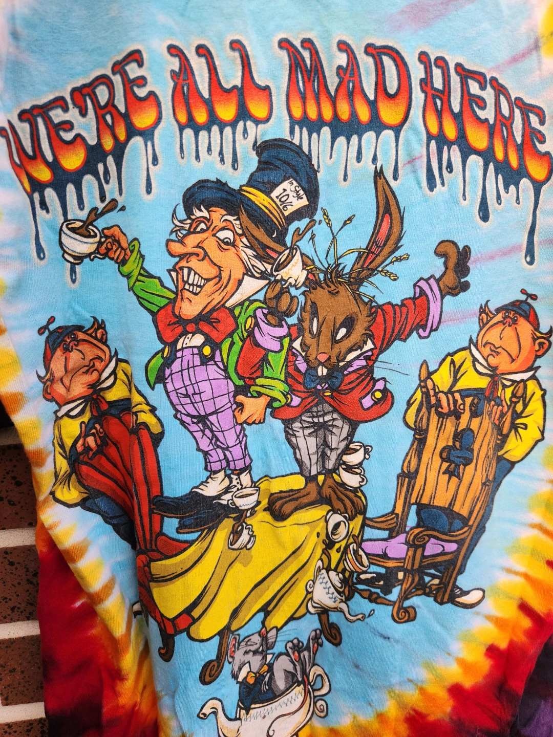 1) Tie Dye Alice in Wonderland graphic tee. Bright, bold, trippy, great for festivals and raves, size M - $20