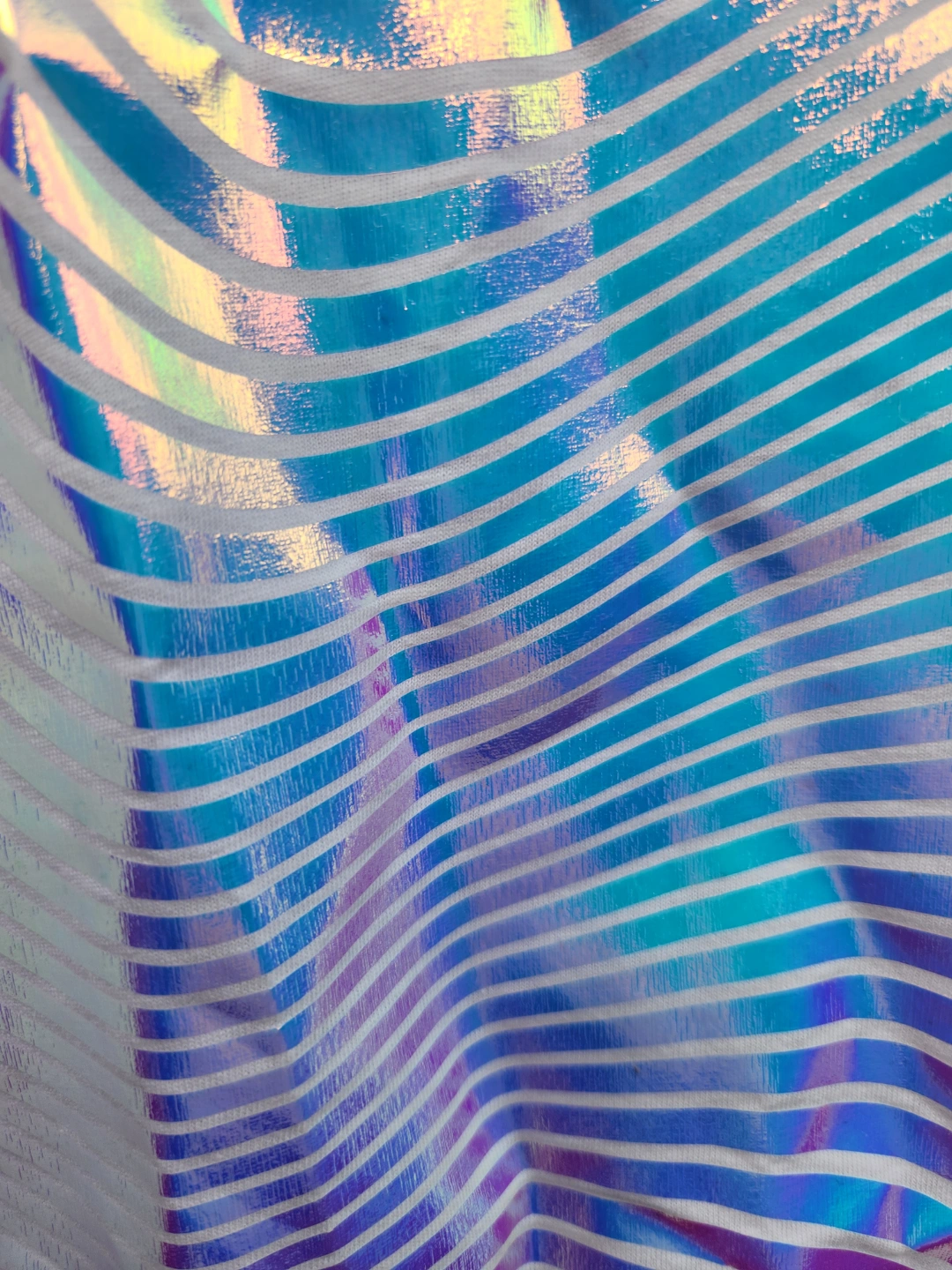 3) Holographic long sleeve shirt from Euphoria Extractions, glossy blue/pink design on white, new with tags (retails $40), size XS - $15