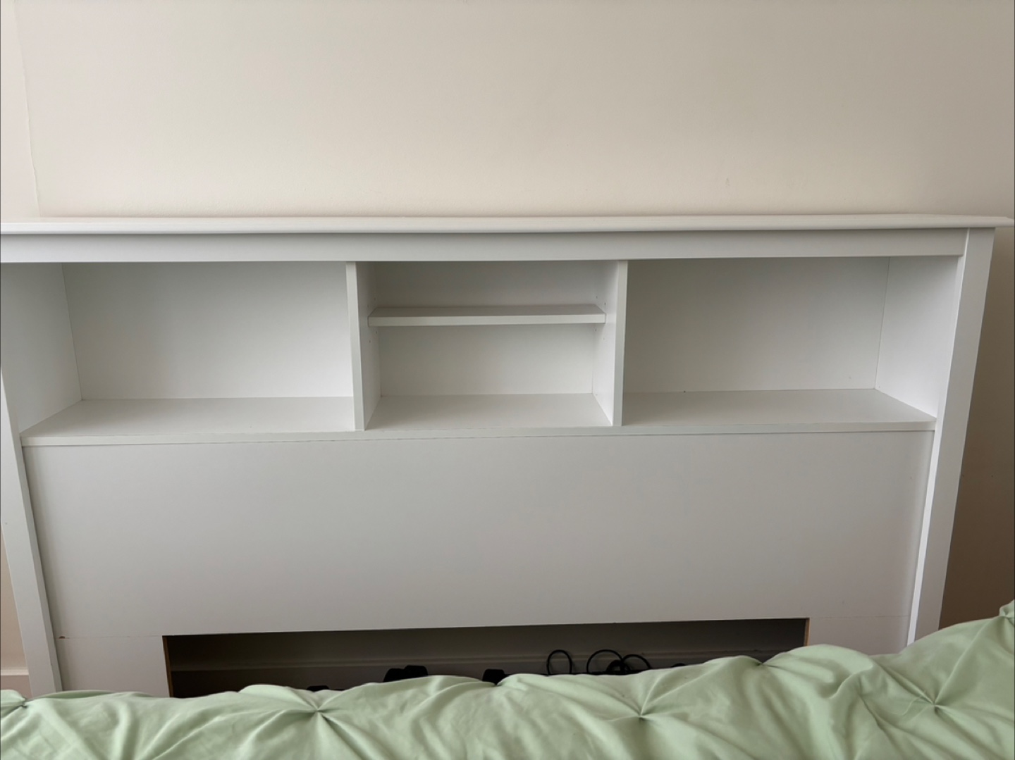 White Wooden Headboard with Shelves