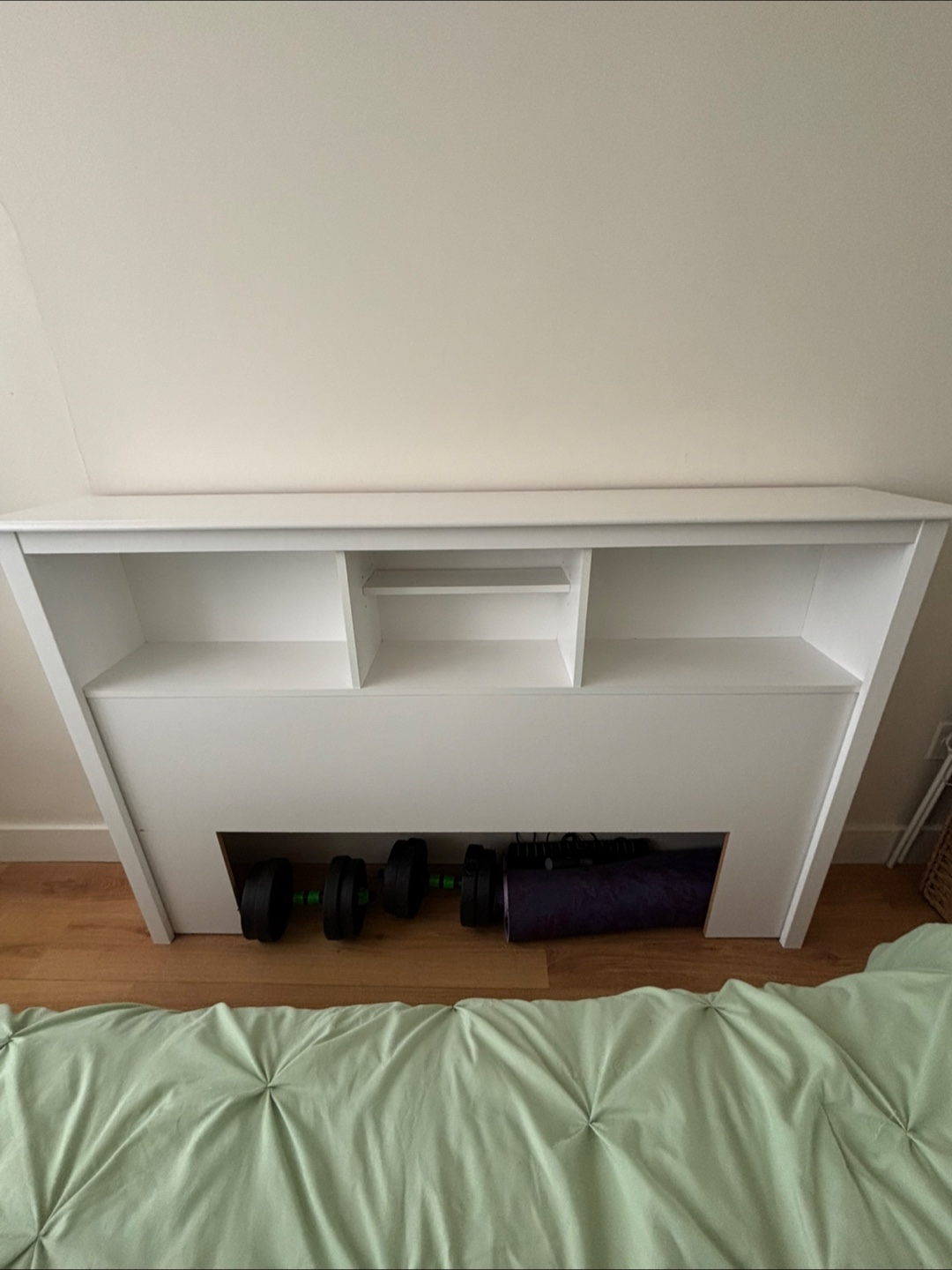 Gifting!! White headboard with built-in shelves. Great for storage. Simple design. Looks great in any bedroom. Ikea . Pick it up Barclay Street and Denman until Sunday,May 25. I used to use as well as TV stand for the bedroom :)