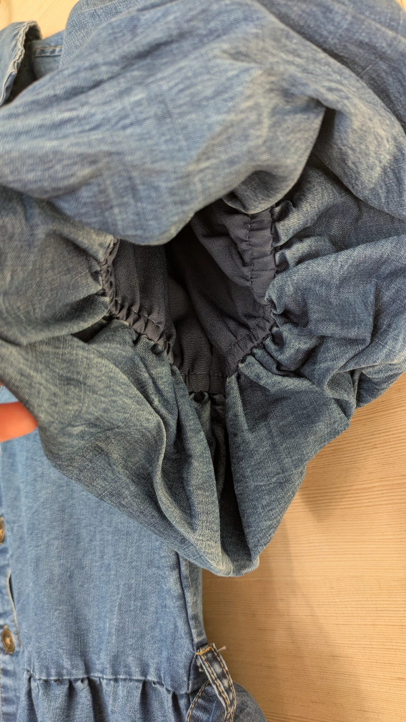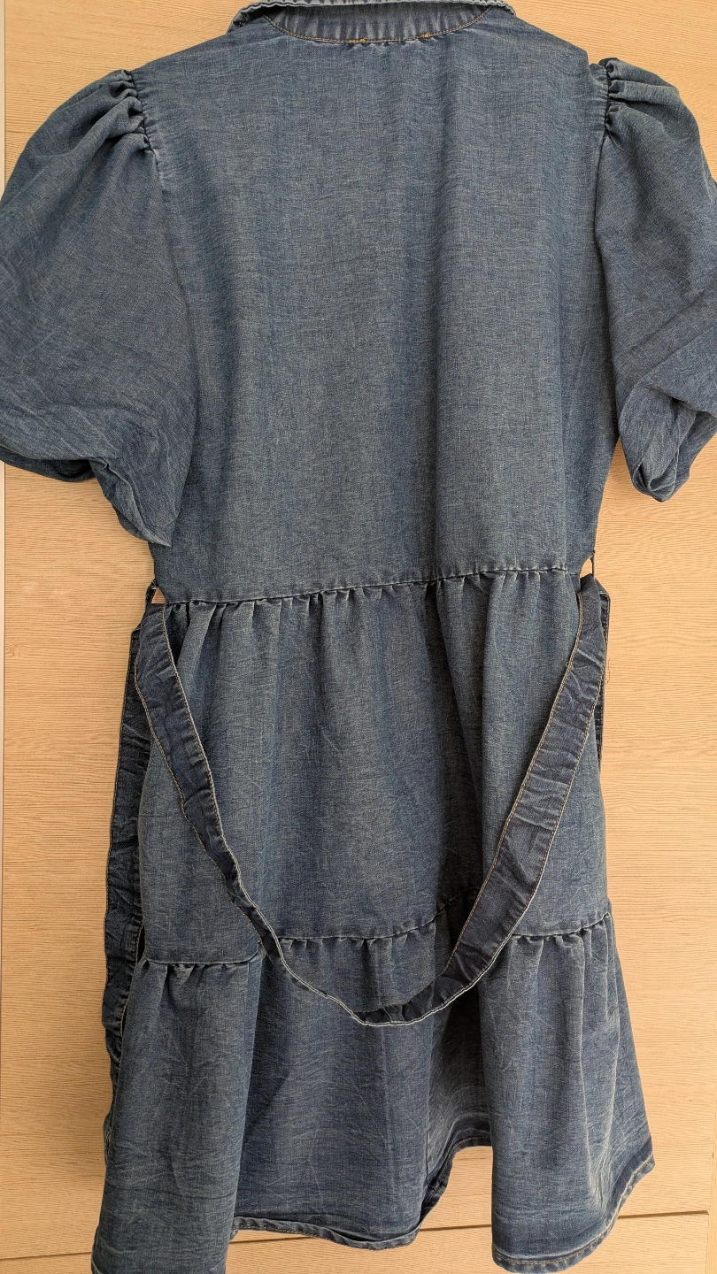 Button down front. Puff sleeves. Tiered skirt. Size 6. Includes waist tie.