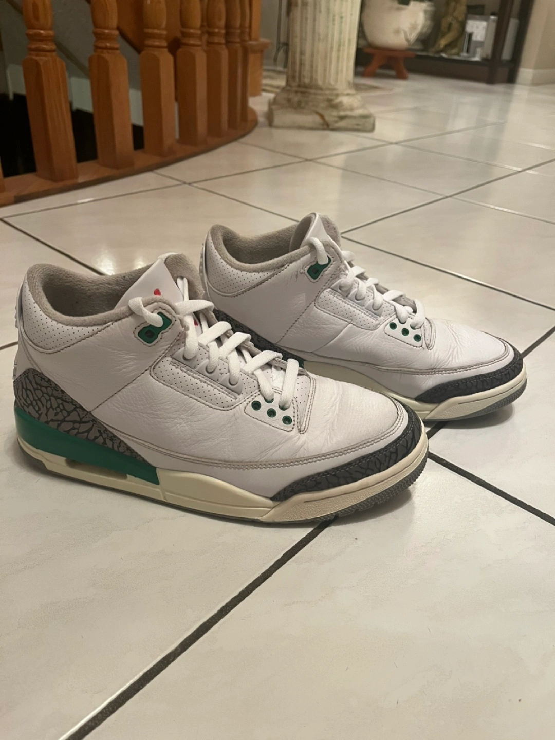 Buy & SellAir Jordan 3 Retro SE Men's Shoes - Size US 7Air Jordan 3 Retro SE Men's Shoes - Size US 7$70Pre-owned Air Jordan 3 Retro SE sneakers. White leather upper, green accents. Size US 9.5 Some wear and tear.ConditionGoodSize9.5 us mensBrandAir Jordan2 chats·1 favorites·55 viewsSELLERLiamWillowbank Trail311 reviewWHERE TO MEETNo frills