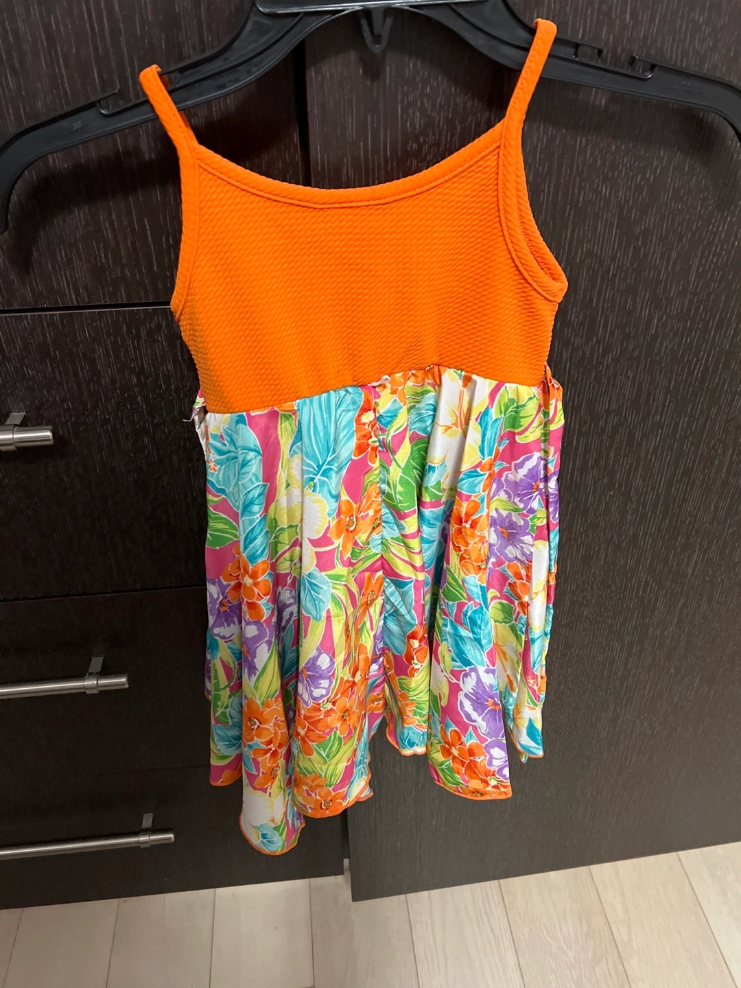 34Orange top, floral bottom. Two-toned. Cute summer dress. Size 3 T Great for parties or everyday wear.