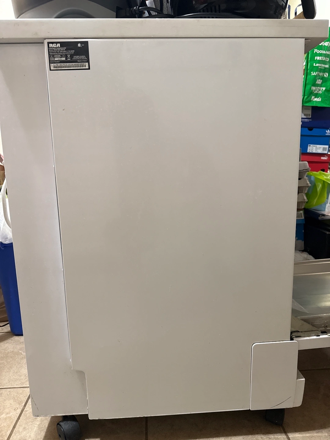 Used RCA RDW1809-WHITE portable built-in dishwasher. White finish. Features multiple wash cycles. Includes cutlery basket and upper rack. In perfect working condition. Will provide water hose to sink for free.