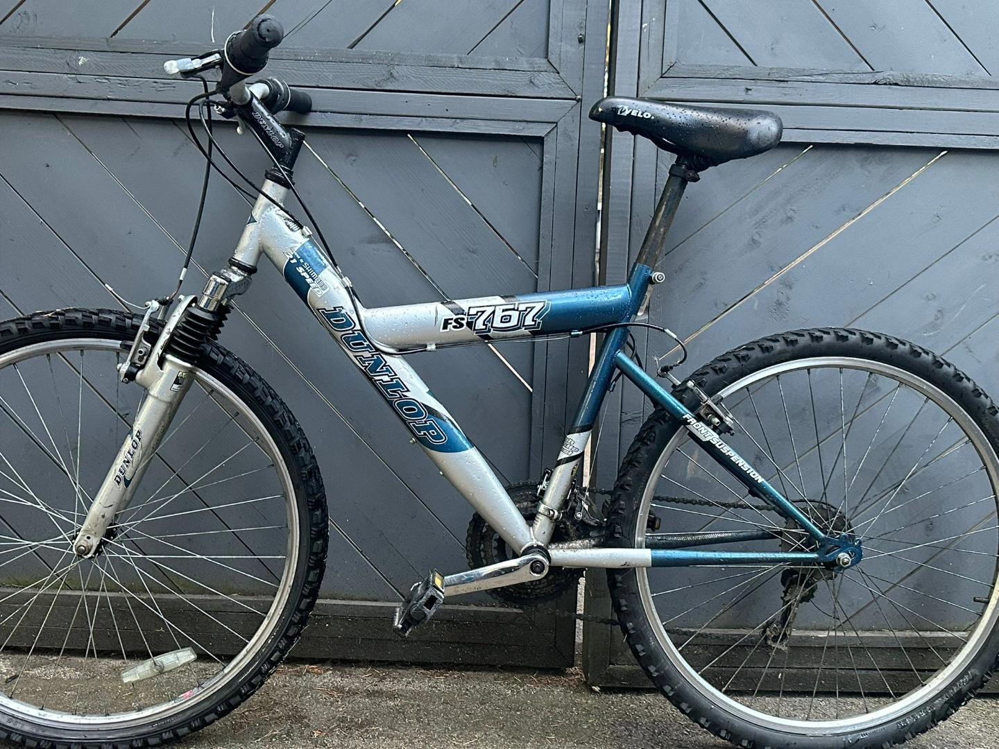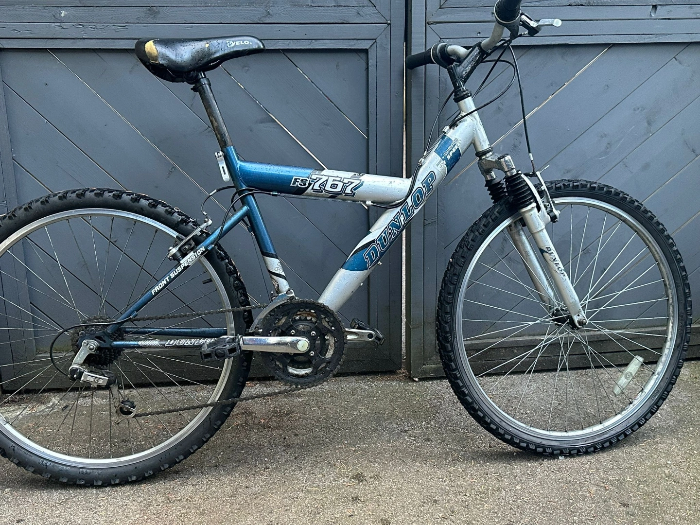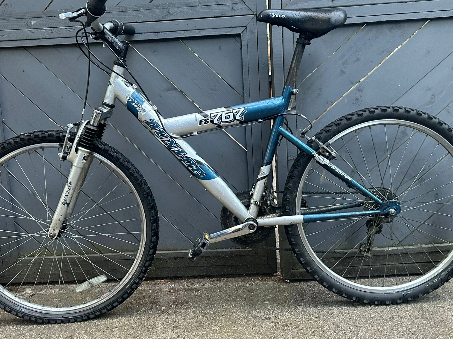 Vintage Dunlop FS767 mountain bike. Front suspension. Good for leisure riding. Shows wear from age and use.its on good condition anythings works well .you can see the size of the tires at the pictures.pick up royal kwantlen park.