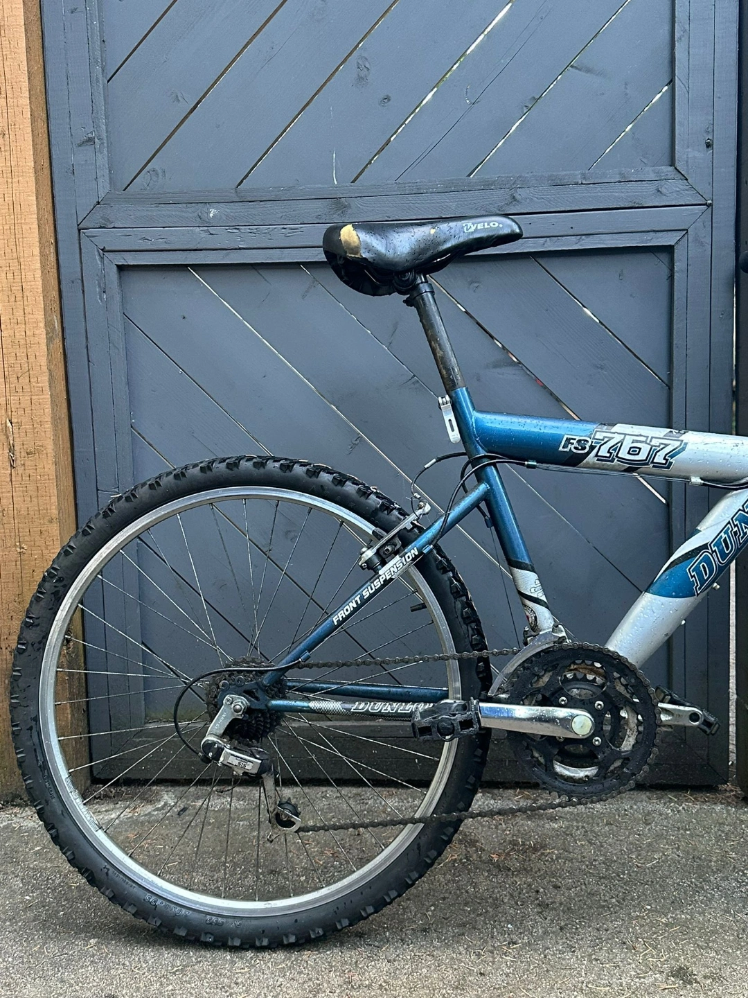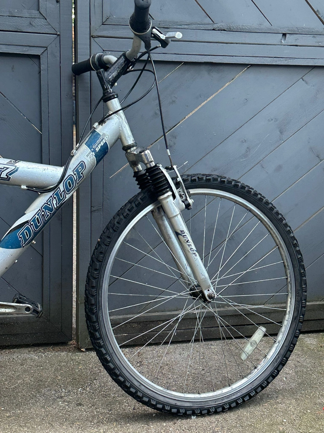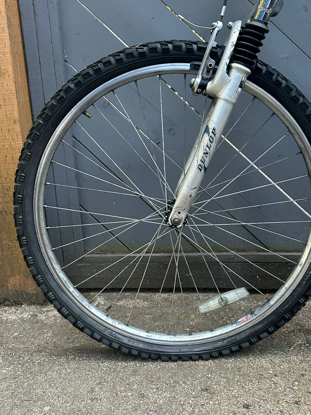 Vintage Dunlop FS767 mountain bike. Front suspension. Good for leisure riding. Shows wear from age and use.its on good condition anythings works well .you can see the size of the tires at the pictures.pick up royal kwantlen park.