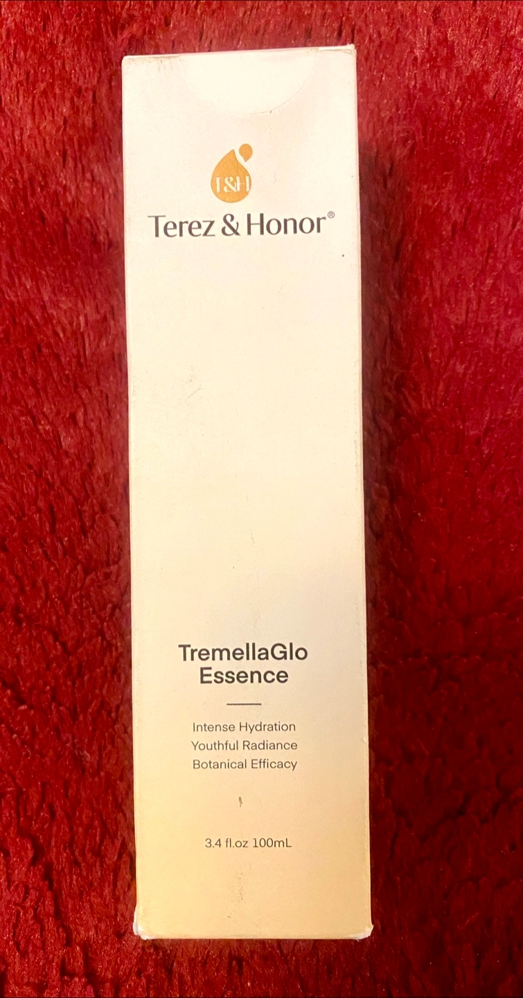 100ml bottle of Terez & Honor TremellaGlo Essence. Intense hydration, youthful radiance, and botanical efficacy. Made in Korea. Vegan.