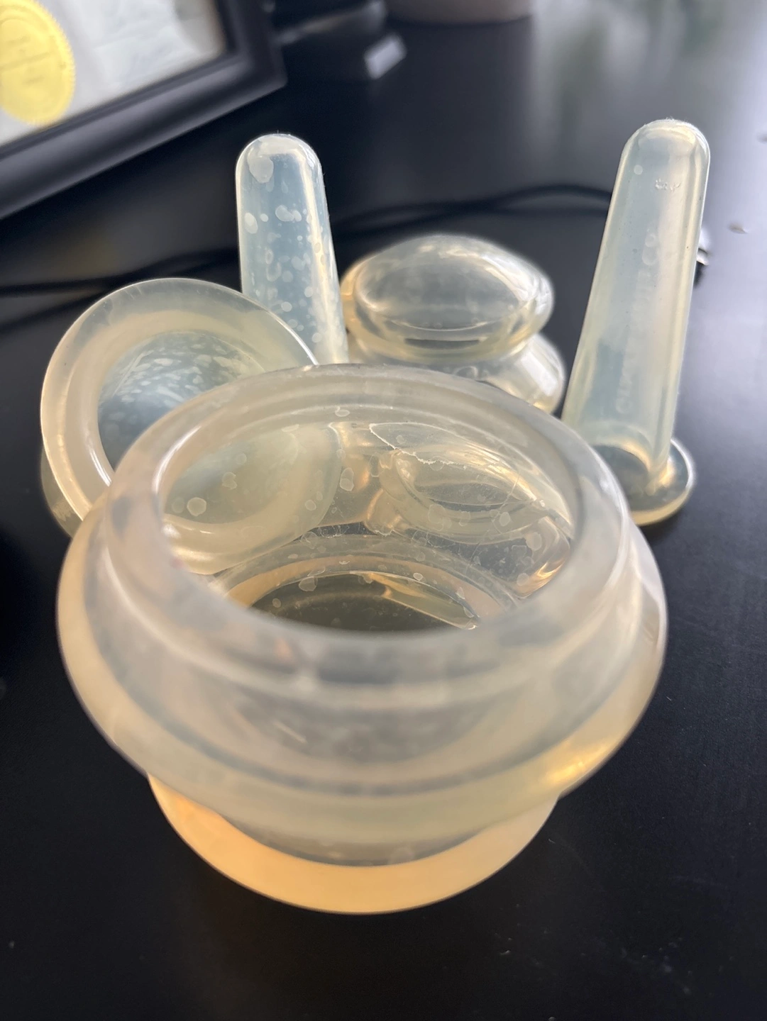 Set of silicone cups for cupping therapy. Various sizes included. Great for self-massage. Gently used once cleaned in hot dishwasher.