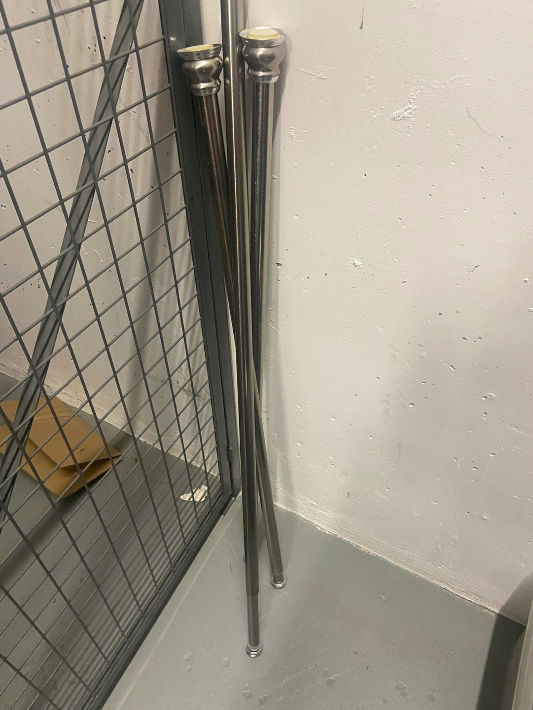 2 silver metal curtain rods. Perfect for a window or doorway or shower. New or like new. No rust. Used in office.